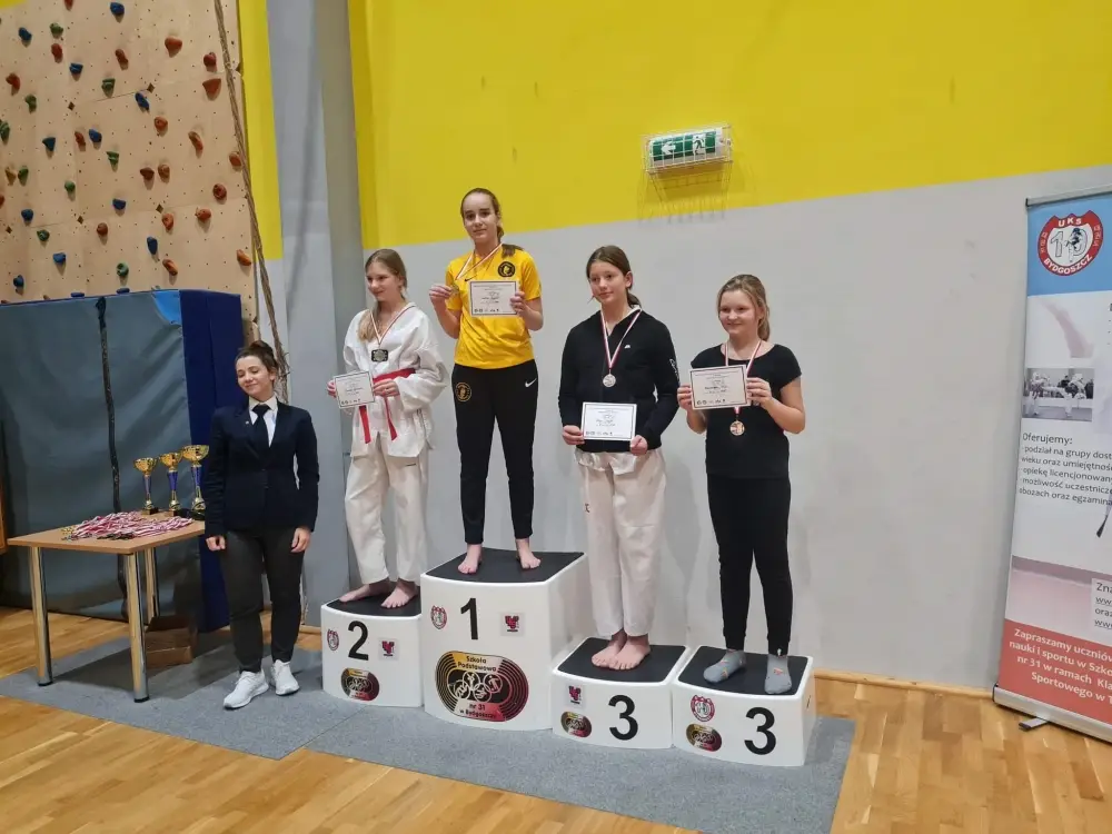 To jednak nie koniec dobrej passy dziewczyn na tym turnieju, ponieważ Vice mistrzynią w swojej kategorii wiekowej została Julia Malinowska – to jej pierwszy start na Międzywojewódzkich Mistrzostwach Młodzików. Nieco niżej na podium stanęła z brązowym medalem jej siostra Natalia Malinowska. Julia wywalczyła brązowy medal również w konkurencjach sprawnościowych, a Natalia zajęła 4 miejsce, przez co można śmiało powiedzieć, że augustowianki to dziewczyny na medal! Mamy także nadzieję, że siostry za rok powtórzą sukces Izy, a Iza równie walecznie będzie się spisywać w nowej kategorii kadet, do której teraz przechodzi.