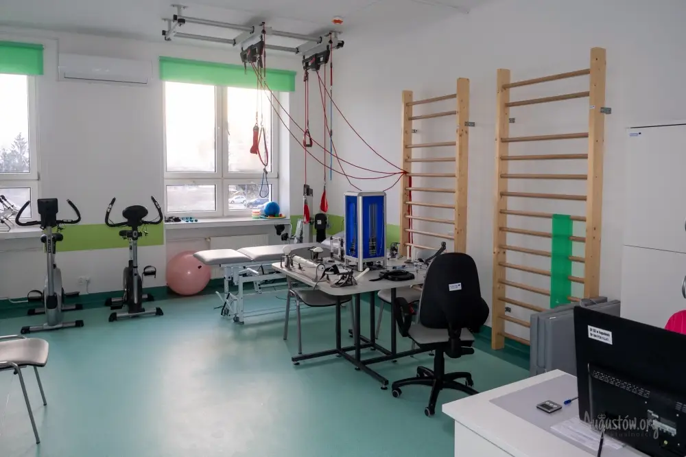 Zakupiono sprzęt rehabilitacyjny, między innymi (szyny do ćwiczeń kończyn, aparaty do elektroterapii i laseroterapii, komorę do suchych kąpieli, atlas, bieżnię i rower treningowy, ławki i stoły rehabilitacyjne, orbitrek, Terapuls, drabinki, schody, lampy) za kwotę 475.995,00 PLN. SPZOZ w Augustowie zakupił łącznie 48 pozycji aparatury rehabilitacyjnej i niezbędne elementy wyposażenia wnętrz.
