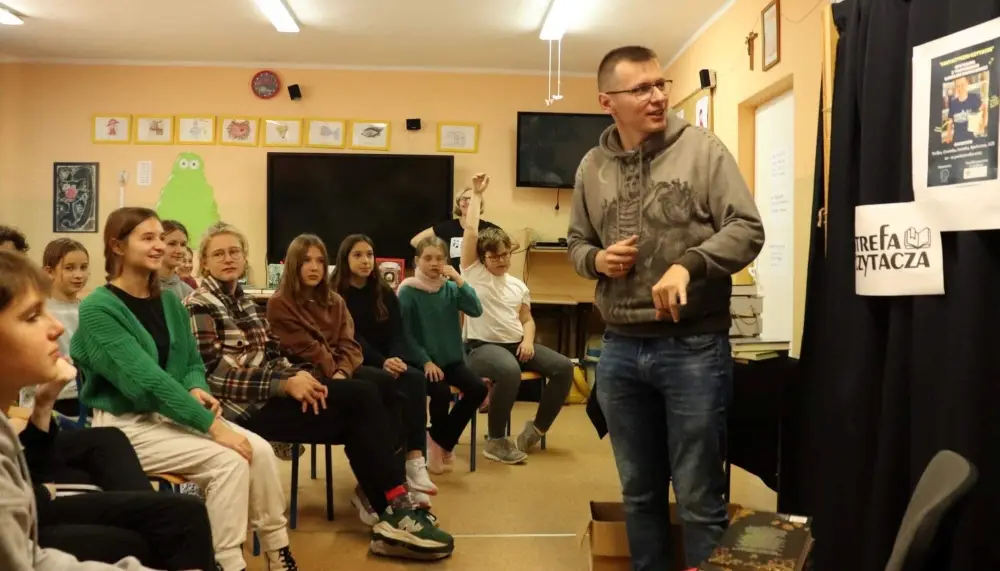 Podczas spotkań młodzieży z książkowym youtuberem Danielem Muniowskim temperatura dyskusji i emocje rozgrzewały zarówno miłośników czytania, jak i miłośników gier komputerowych. Nasz gość opowiadał o tym, jak się te dwa światy przenikają.