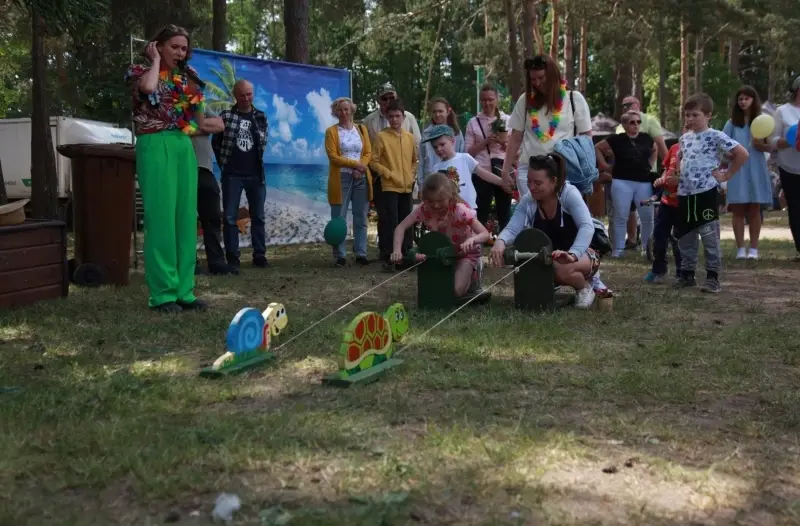 Tego dnia podczas zawodów swoje umiejętności sprawdzili fani wędkarstwa. O 12:00 przyszedł czas na kolejną porcję wspólnych rozrywek. Przenieśliśmy się na plac przy amfiteatrze, gdzie w hawajskim stylu świętowaliśmy do wieczora. Dzieci chętnie korzystały z przygotowanych atrakcji: eko warsztatów, kącików sensorycznych, darmowej waty cukrowej, popcornu oraz dmuchanego placu zabaw.