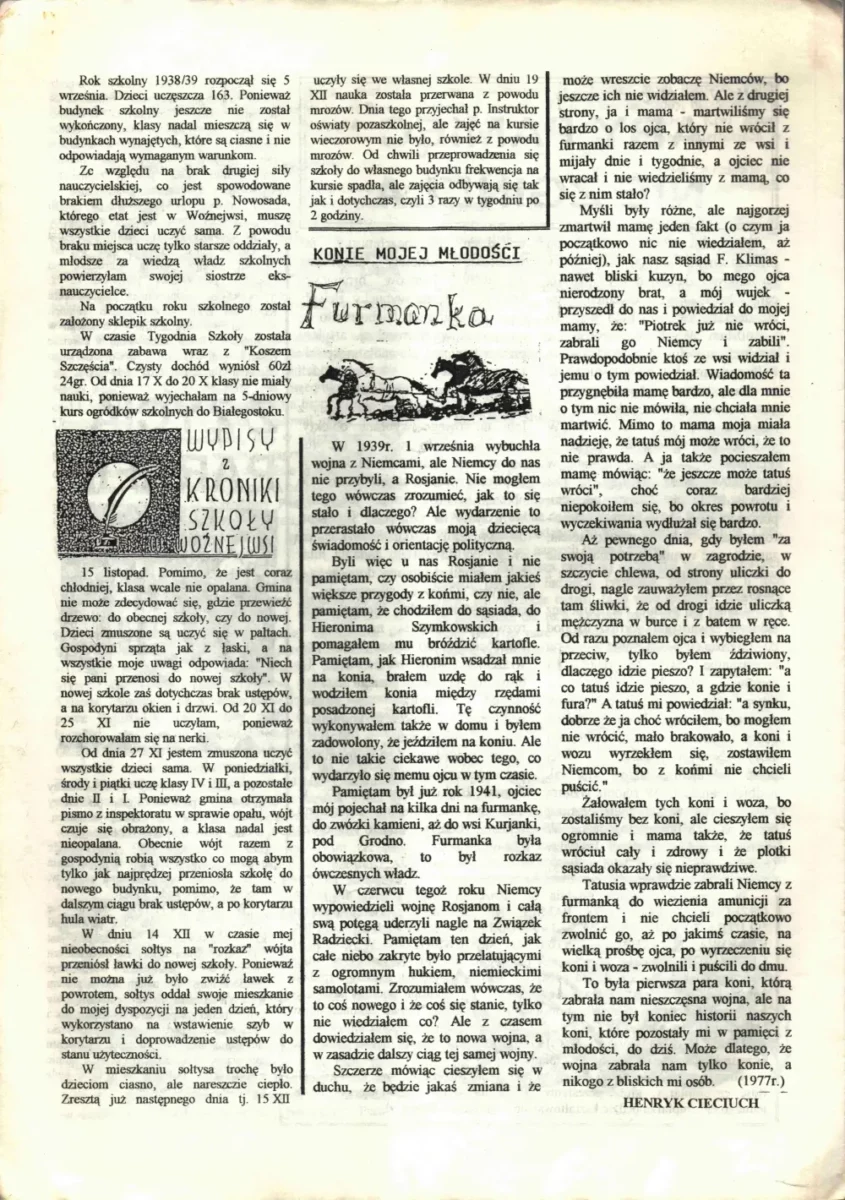 Józko, z ciekawością przeczytałam wspomnienie o życiu i twórczości Pana Henryka Cieciucha. Twoja praca jako dokumentalisty tutejszych ludzi pióra jest wspaniała.