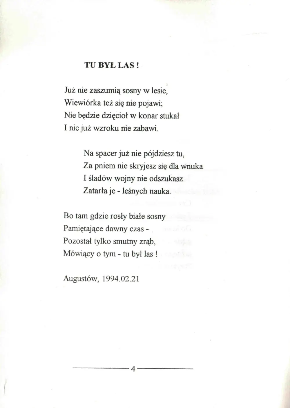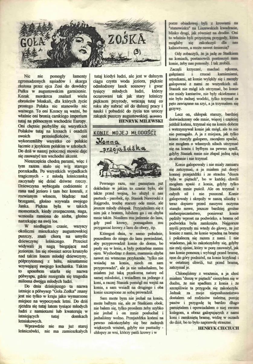 Wiersze swoje poeta zamieszczał również w „Naszym Dzienniku”, „Przeglądzie Augustowskim” i „Rajgrodzkich Echach”.