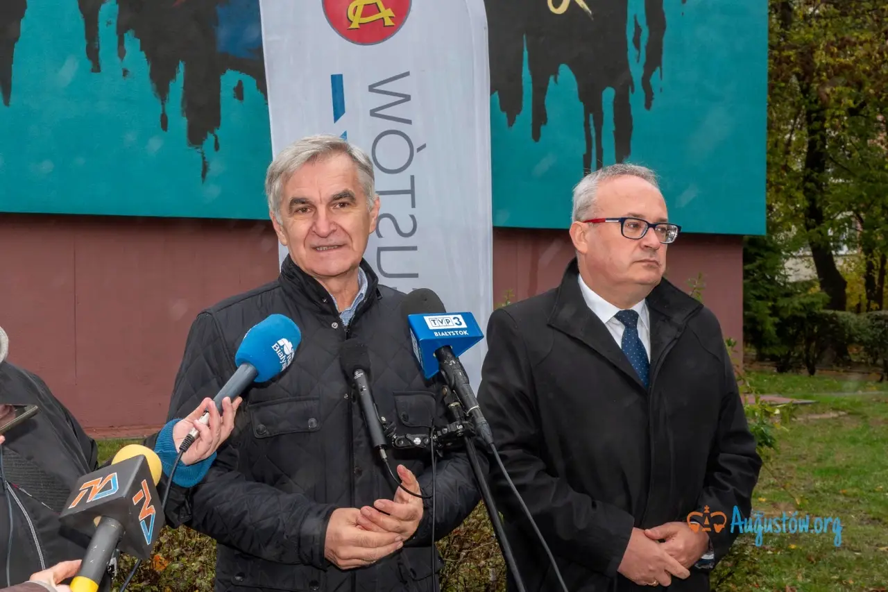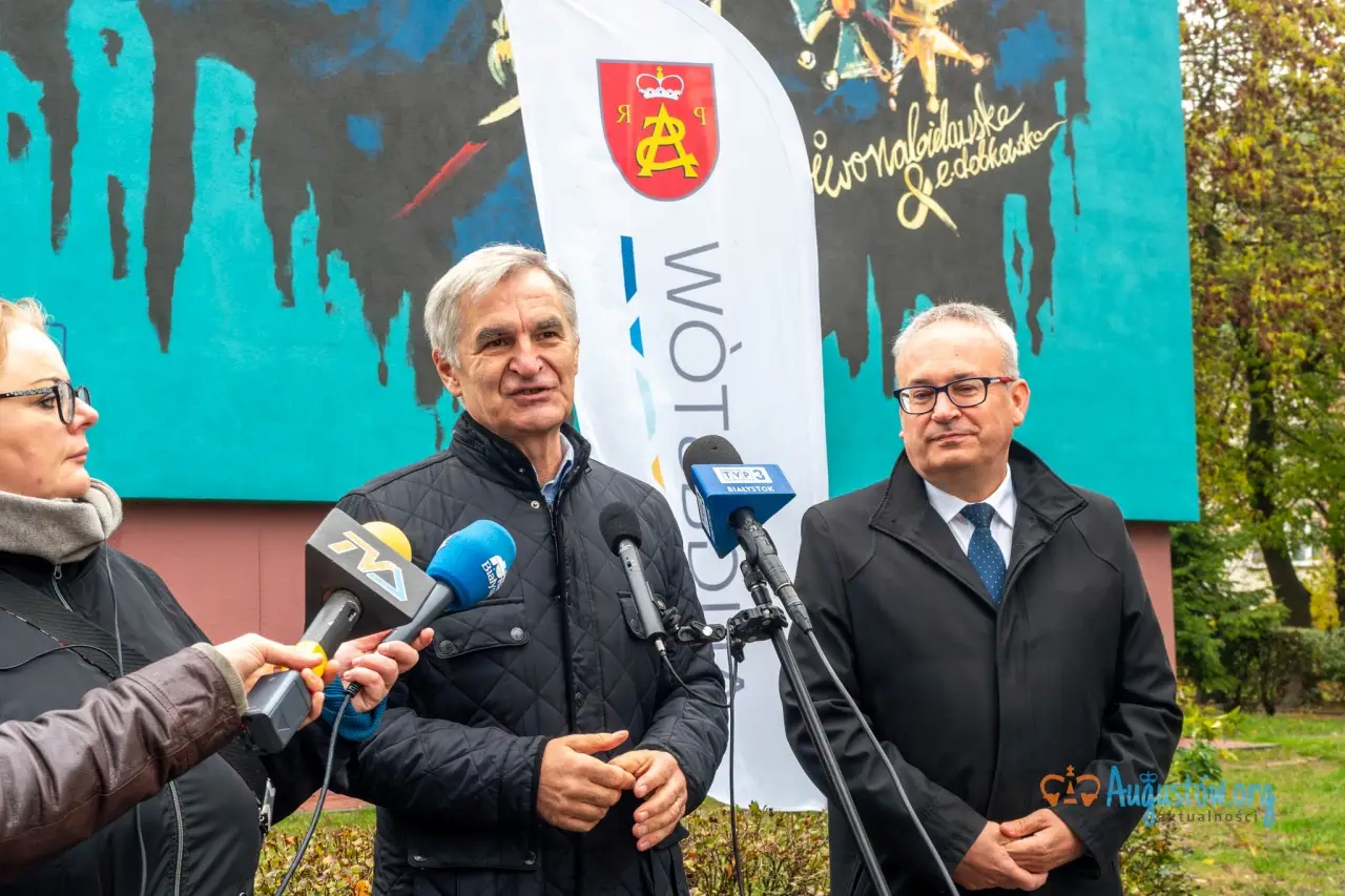 W dzisiejszej uroczystości, której przewodniczył Burmistrz Augustowa Mirosław Karolczuk uczestniczyły autorki muralu panie Iwona Bielawska i Elwira Dobkowska oraz przedstawiciele instytucji, które włączyły się w obchody 200-lecia symbolicznego początku budowy Kanału Augustowskiego.