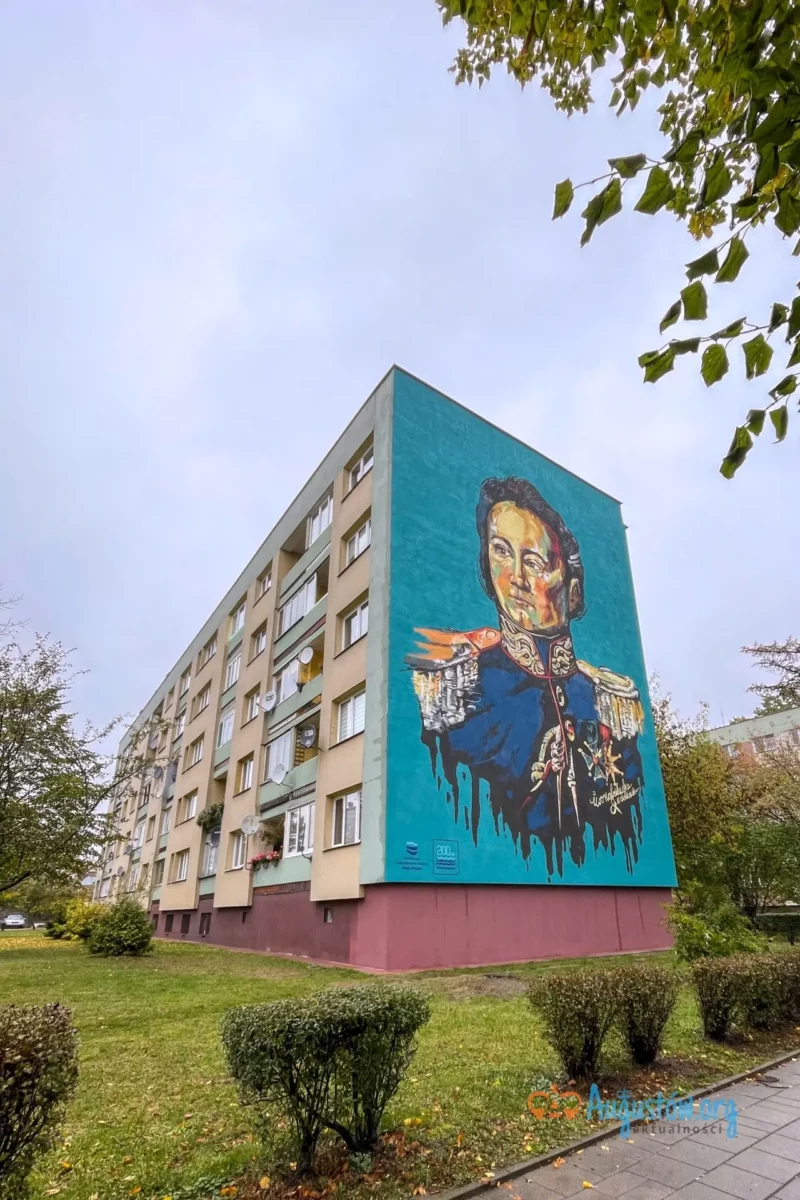 W czwartek, 26 października w Augustowie miało miejsce oficjalne odsłonięcie nowego muralu. To kolejny mural, który pojawił się w tym roku w Augustowie. Ten, widnieje na ścianie bloku przy ulicy Śródmieście 2 i jest to portret gen. Ignacego Prądzyńskiego, budowniczego najczęściej kojarzonego z naszym miastem obiektu Kanału Augustowskiego. Unikatowego w skali Europy dzieła inżynierii hydrotechnicznej, transgranicznego zabytku budownictwa wodnego, od roku 2007 posiadającego status Pomnika Historii.