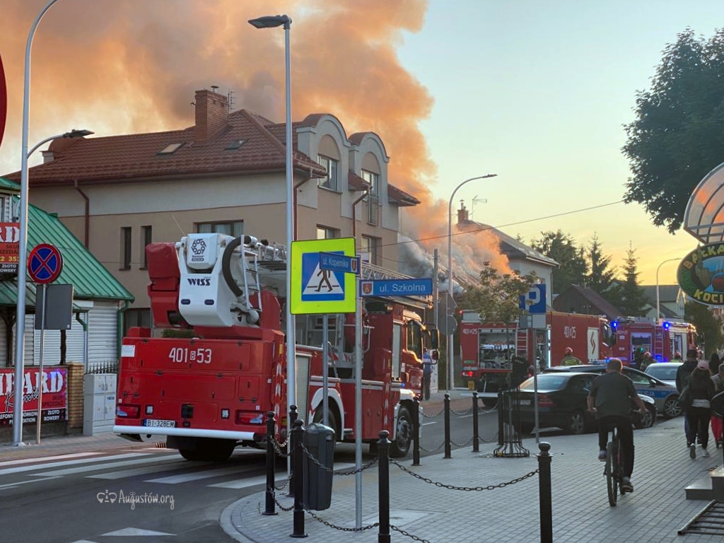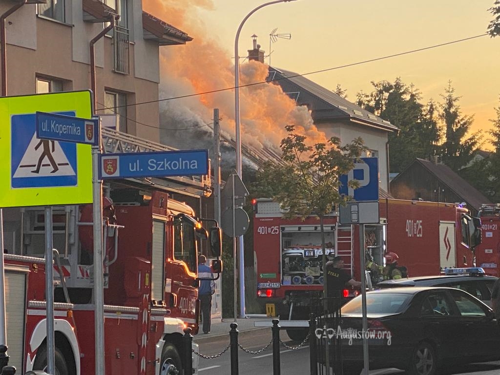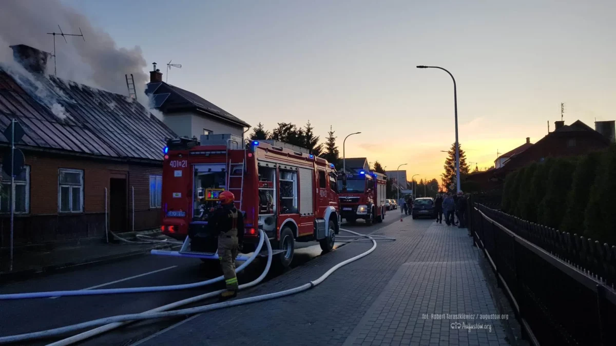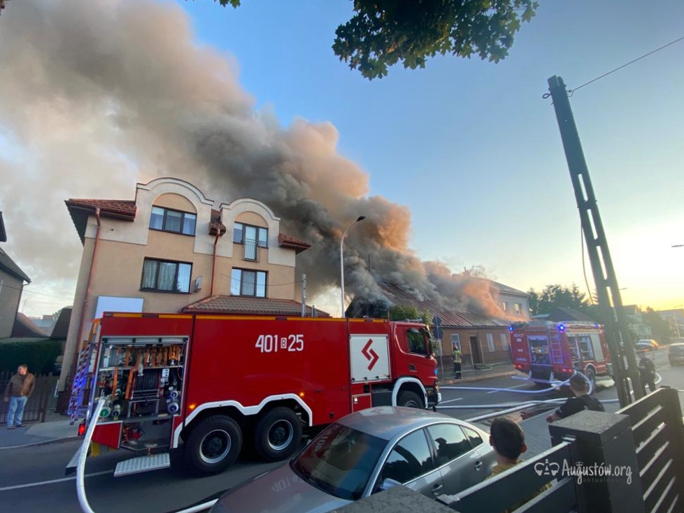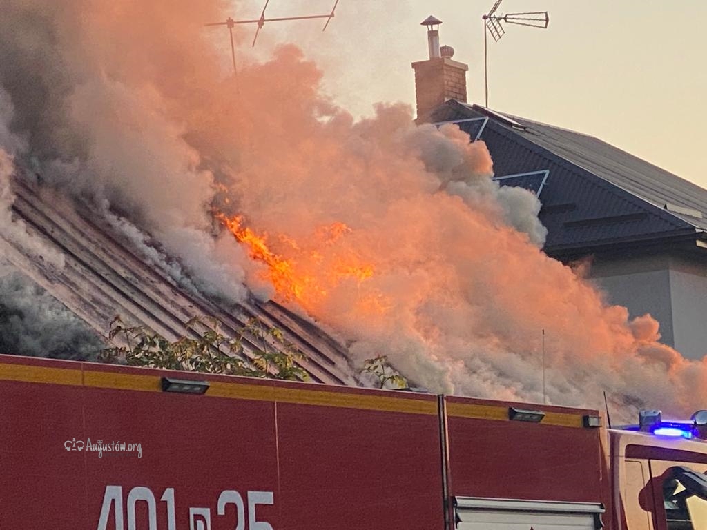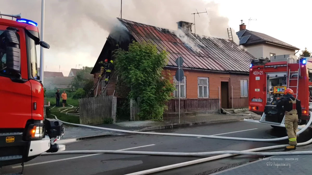 03 czerwca 2023 r. w godzinach wieczornych do Stanowiska Kierowania Komendanta Powiatowego PSP w Augustowie wpłynęło zgłoszenie o pożarze budynku mieszkalnego w Augustowie. Po przybyciu na miejsce Jednostek Ochrony Przeciwpożarowej zastano wydobywający się ogień i dym z poddasza budynku niezamieszkałego-pustostanu.