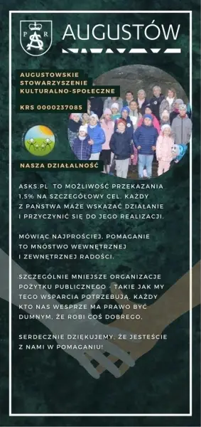 Pokazaliśmy, jak ważną rolę organizacje pożytku publicznego pełnią w życiu społecznym Augustowa i jak wiele dobrego robią. Mogliście zobaczyć, jakie projekty realizują, jakie cele stawiają przed sobą oraz jak ich działalność pomaga mieszkańcom naszego miasta. Dlatego zachęcamy do wsparcia augustowskich bohaterów.