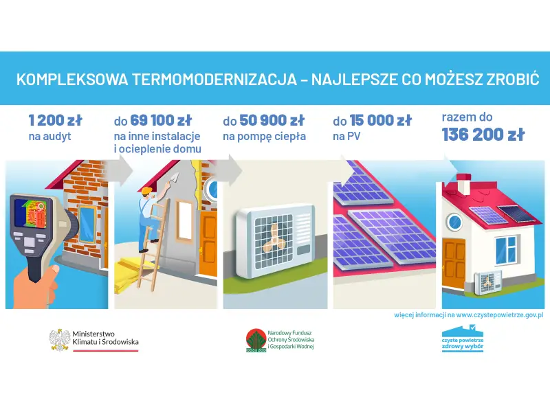Zanim przystąpisz do programu Czyste Powietrze, warto jest wykonać audyt energetyczny swojego budynku. To dokument opracowany przez specjalistę, który pokazuje co w domu należy docieplić, zainstalować i wymienić w ramach termomodernizacji, aby była ona efektywna. Taka kompleksowa termomodernizacja umożliwia otrzymanie najwyższej dotacji, a później płacenie niższych rachunków.