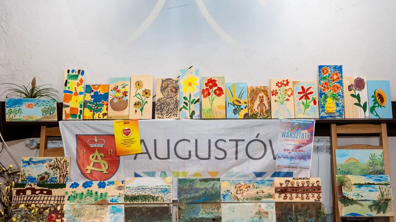 * Wystawa prac malarskich wykonanych przez uczestników warsztatów będzie wyeksponowana w osiedlowym Domu Kultury Spółdzielni Mieszkaniowej, przy ulicy Hożej 2 w Augustowie.
