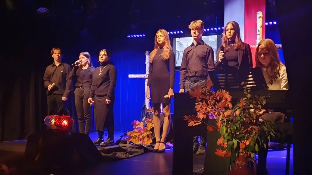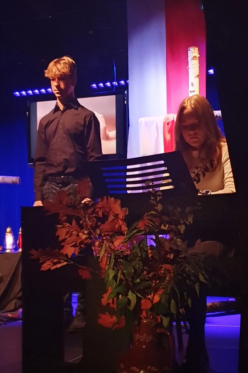 W tę niezwykłą, poetycko-muzyczno-patriotyczną, podróż zabrali młodzież II LO w Augustowie (30 października), a następnie społeczność naszego miasta (2 listopada) przede wszystkim najmłodsi adepci sztuki teatralnej, czyli uczniowie klas pierwszych, wspomagani przez kilkoro starszych koleżanek i kolegów. Niepowtarzalny klimat stworzyli oraz swoim nieprzeciętnym talentem i wrażliwością podzieli się z publicznością: Amelia Haraburda (I a), Laura Jasińska (I a), Zofia Kleczkowska (I a), Nina Dobrowolska (I a), Anna Ejsmund (I c), Anna Jarmusik (I c), Klaudia Klepacka (I c), Kornelia Ziarko (I c), Patrycja Walendukanis (I c), Zofia Kierklo (I c), Zuzanna Wróbel (I c), Nikola Rybałt (II a), Sandra Śruba (II a), Klaudia Markiewicz (II a), Weronika Baranowska (II a), Wiktor Świderski (II c), Mikołaj Czerwiński (II d), Igor Leszczyński (II d). Niezwykłą oprawę muzyczną stworzyły: Aleksandra Klejps (I b) i Wiktoria Kulmacz (I b). Za obsługę techniczną odpowiadali: Rafał Grajewski (III b) i Kevin Szmygiel (III b). Nad całością spektaklu czuwali nauczyciele II LO w Augustowie: pani Maria Kisielewska, pani Danuta Kaszlej (konsultacja merytoryczna), pani Elżbieta Sturgulewska (scenografia) oraz opiekun grupy teatralnej „Antrakt” – pan Tomasz Choroszewski.