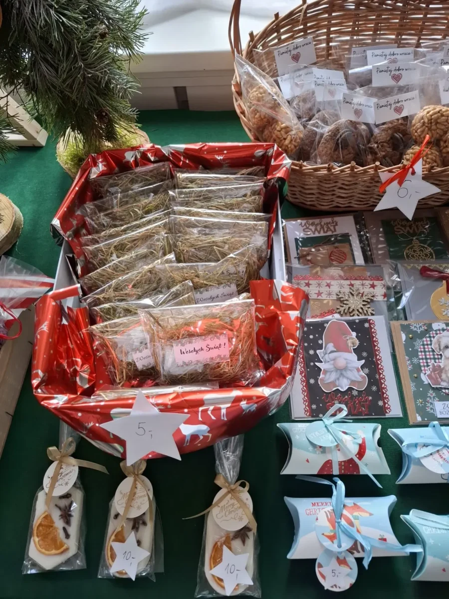 Na stoisku można było zakupić słodkie boxy ze świeżymi, domowymi ciastami, świąteczne stroiki, dekoracje oraz bony podarunkowe ufundowane przez ludzi o dobrym sercu: