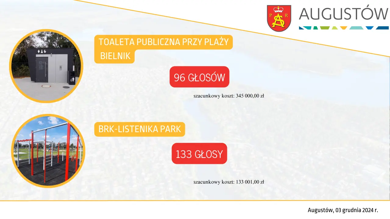 W głosowaniu wzięło udział 2565 osób. To rekord, jeżeli chodzi o frekwencję w kolejnych edycjach augustowskiego budżetu obywatelskiego.