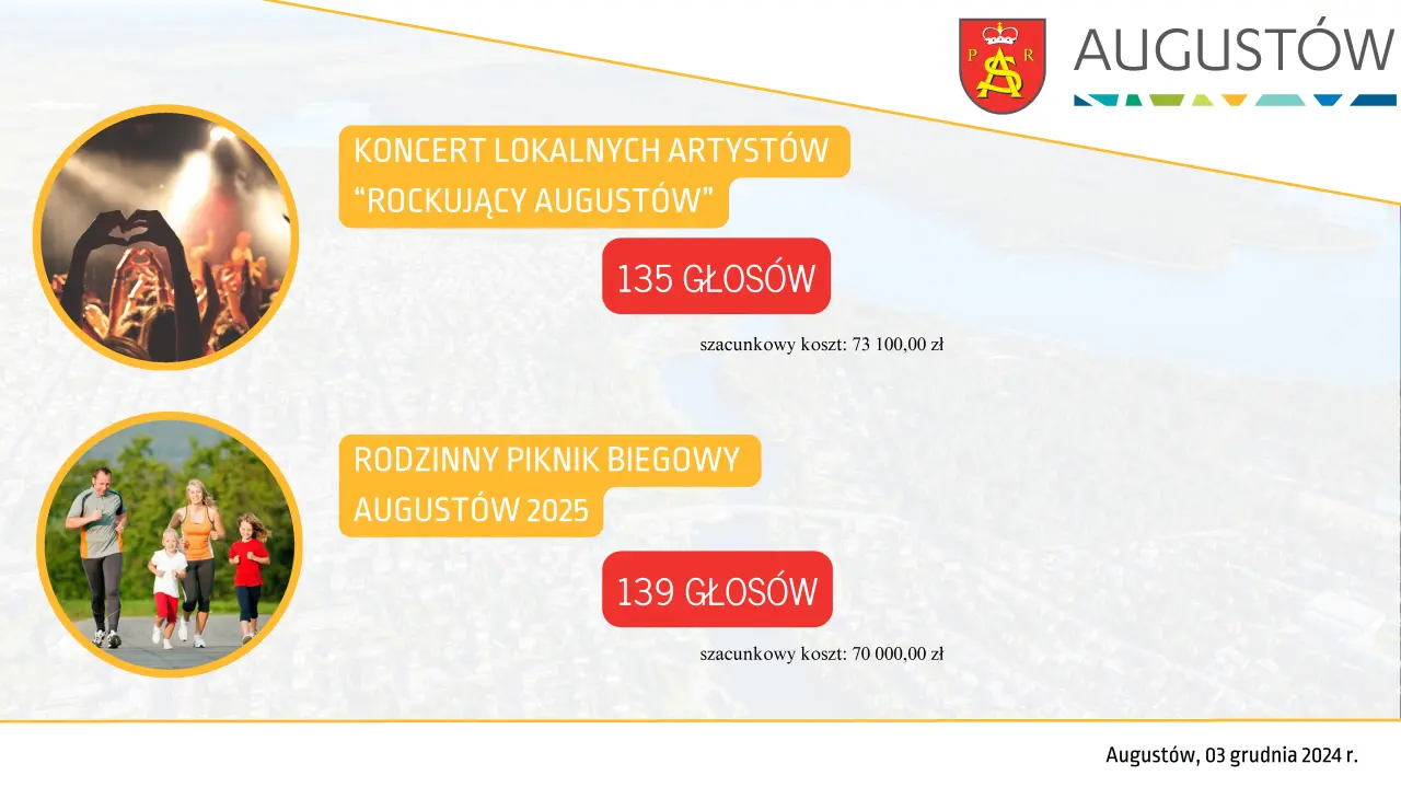 – Obecna odsłona jest z wielu względów wyjątkowa. Przed wszystkim cieszy nas bardzo liczny udział mieszkańców, którzy oddali swoje głosy w plebiscycie. Cieszy mnie to, że mamy ich o prawie 1000 więcej niż w roku ubiegłym – podkreśla Burmistrz Augustowa Mirosław Karolczuk.