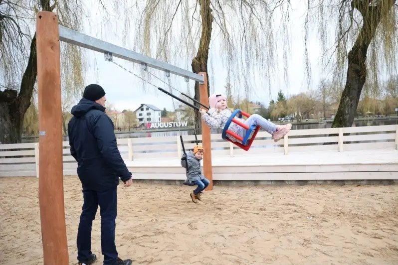 Na otwarcie przybyło wiele augustowskich rodzin z dziećmi. Rodzice spędzali czas głównie rozmawiając przy grillu i ciepłej herbacie, a najmłodsi bez wytchnienia testowali nowy plac. Huśtawki, bujaki, mostki, siatki i trampoliny przeżywały prawdziwe oblężenie. Najmłodsi mieszkańcy było zachwyceni również niebieskim piaskiem, który wypełnia spory fragment przestrzeni placu. Kiedy najmłodsi eksplorowali zakamarki placu i znajdowali kolejne kryjówki, seniorzy testowali urządzenia siłowni na świeżym powietrzu.