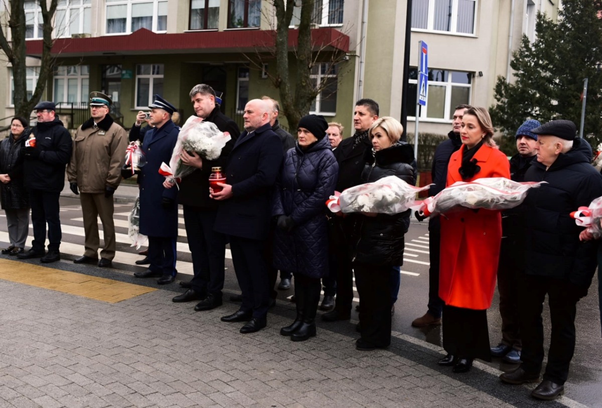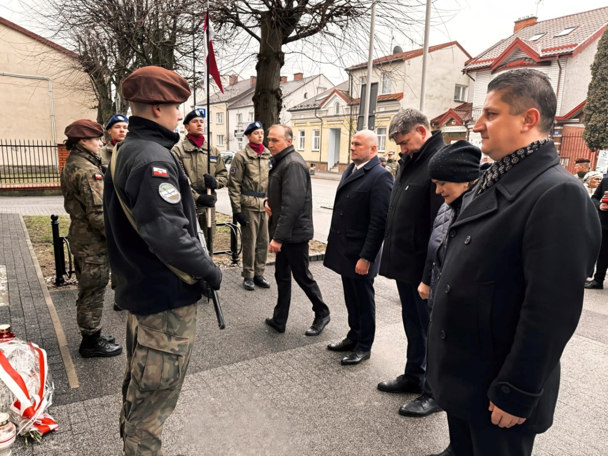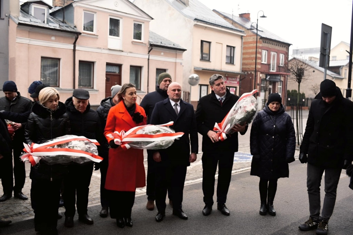 Następnie uczestnicy uroczystości udali się pod budynek Starostwa Powiatowego. Tam pod tablicą upamiętniającą kpt. Stanisława Orechwę oddali mu hołd, składając kwiaty i zapalając znicze.