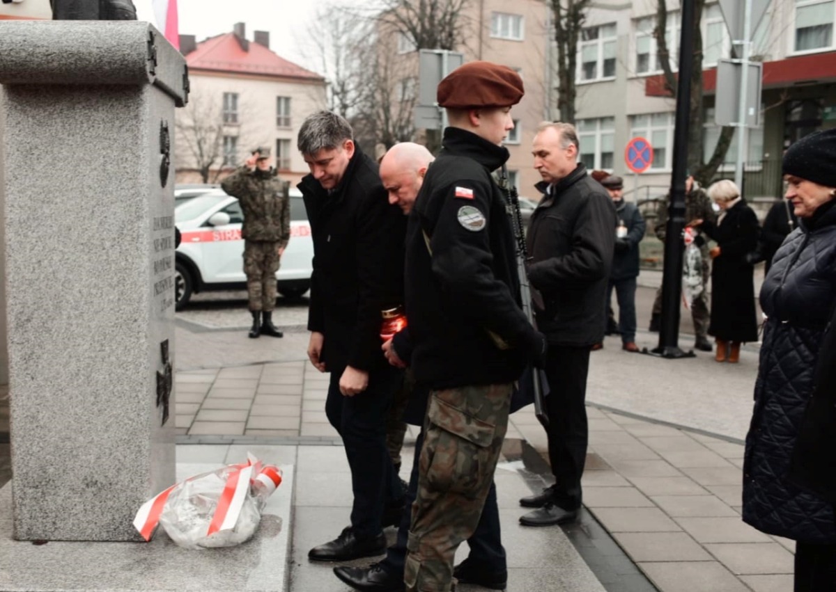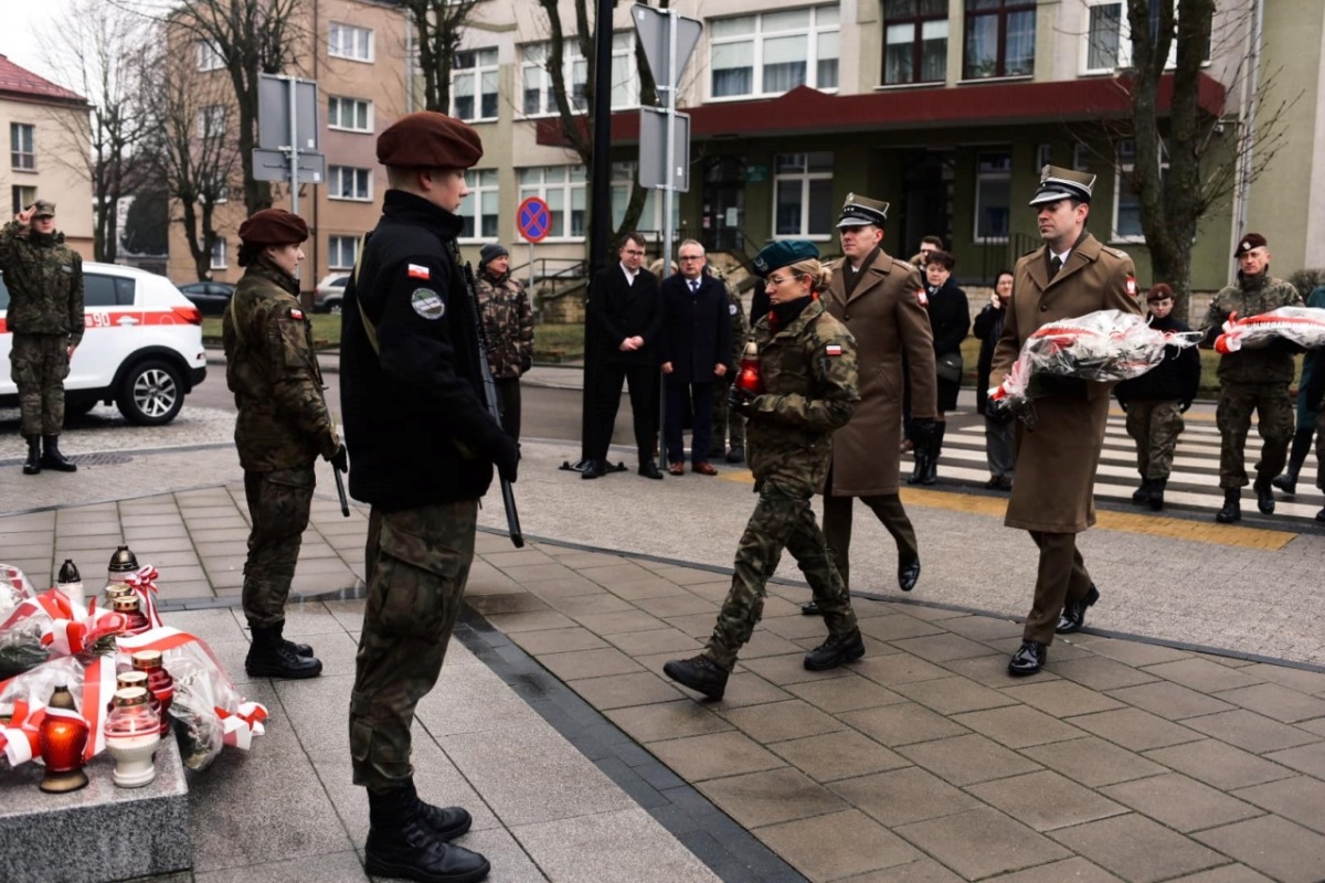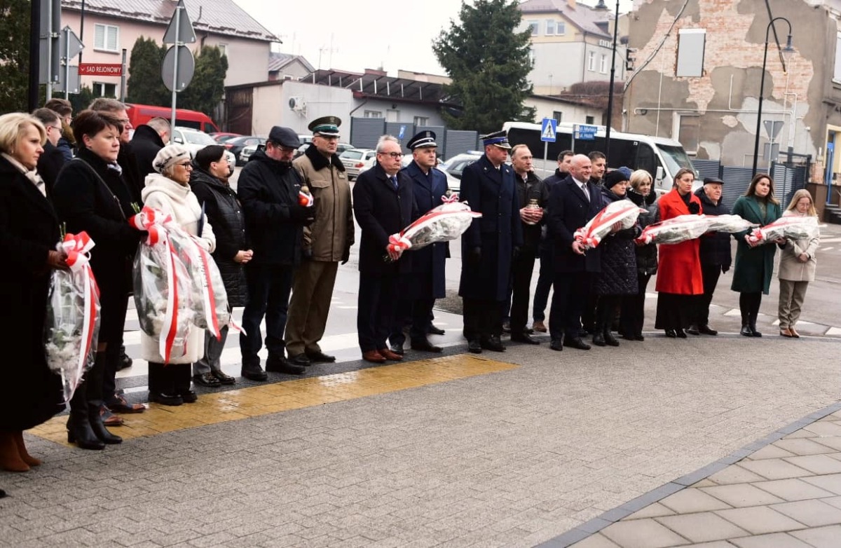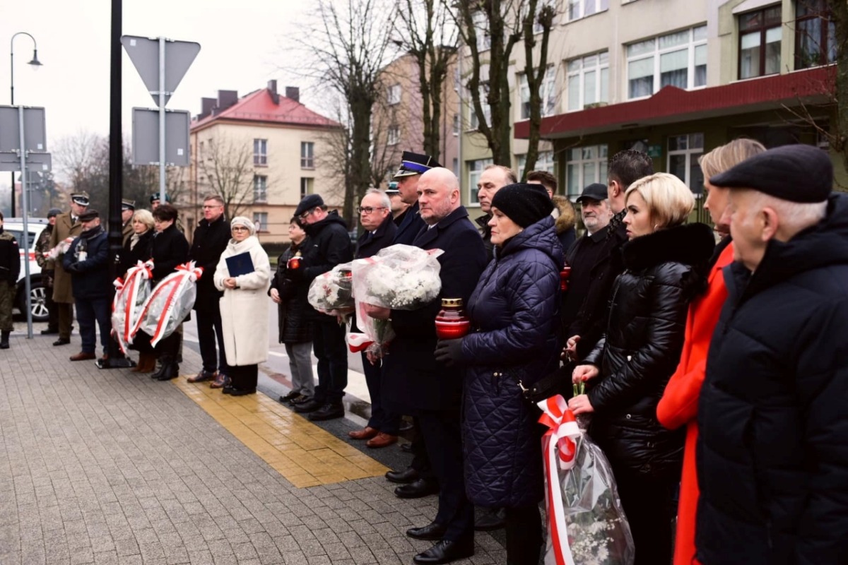 Następnie uczestnicy uroczystości udali się pod budynek Starostwa Powiatowego. Tam pod tablicą upamiętniającą kpt. Stanisława Orechwę oddali mu hołd, składając kwiaty i zapalając znicze.