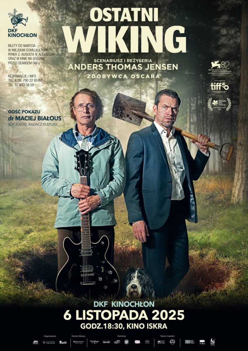 – No właśnie! DKF KINOCHŁON zaprasza do augustowskiego kina Iskra (ul. 3 Maja 38), gdzie w czwartek 6 listopada 2025 o godz. 18:30 wyświetlimy (i przedyskutujemy) remedium na jesienne chłody i słoty film „Ostatni wiking” z Madsem Mikkelsenem i Nikolajem Lie Kaasem w rolach głównych.