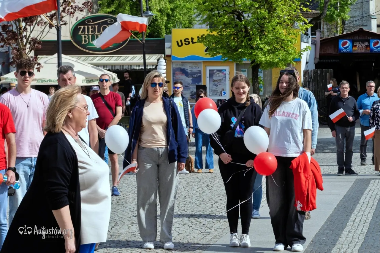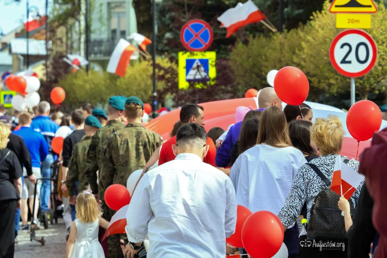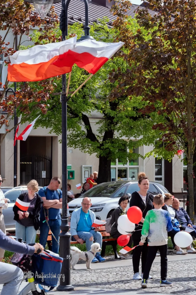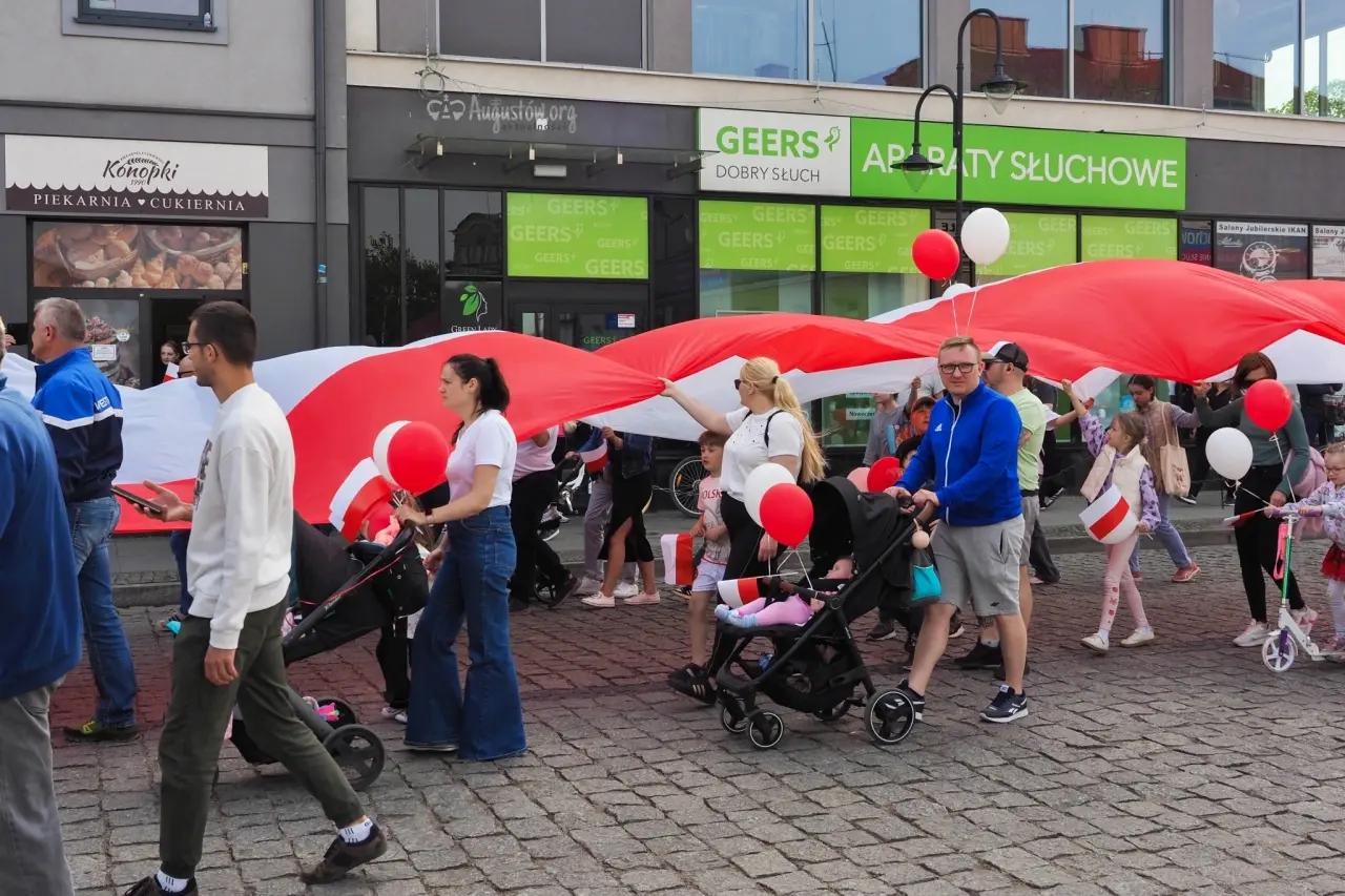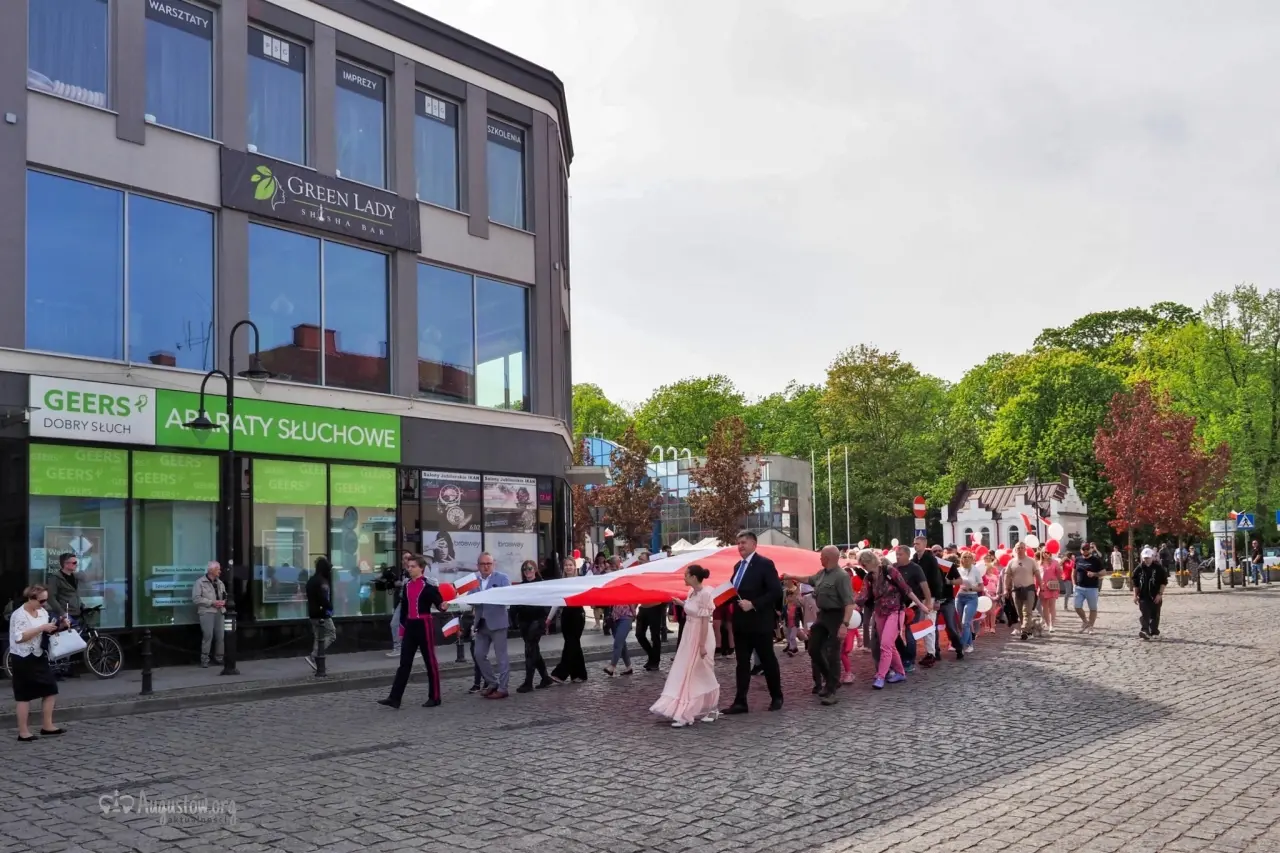 Już przed długim weekendem majowym ulice Augustowa wypełniły się biało-czerwonymi barwami. Powiewały one na budynkach publicznych i domach prywatnych