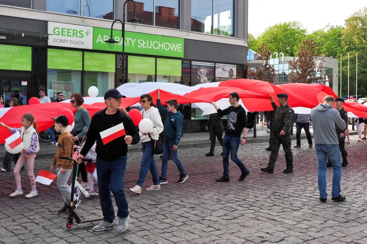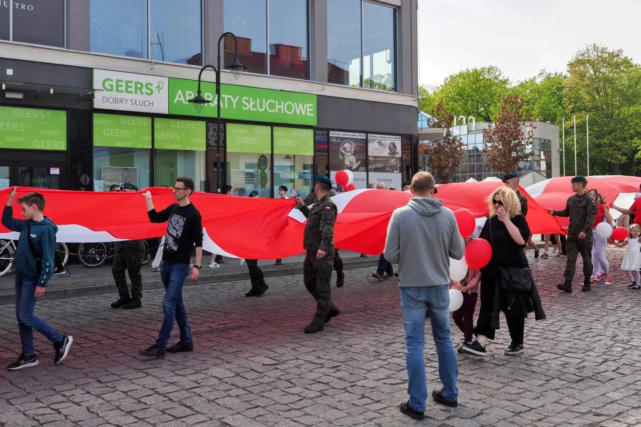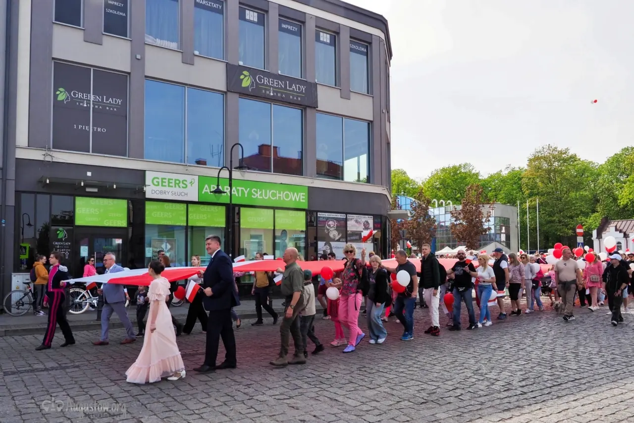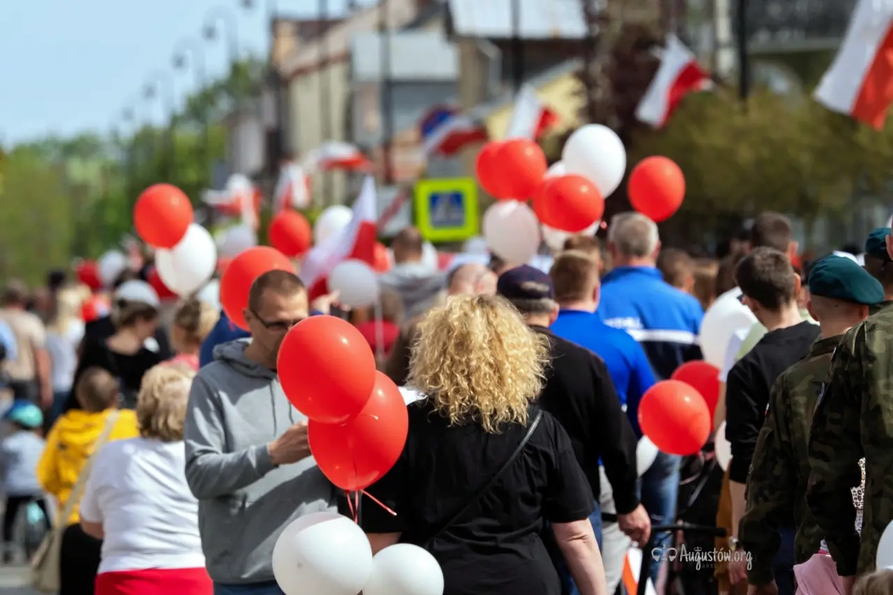 Już przed długim weekendem majowym ulice Augustowa wypełniły się biało-czerwonymi barwami. Powiewały one na budynkach publicznych i domach prywatnych