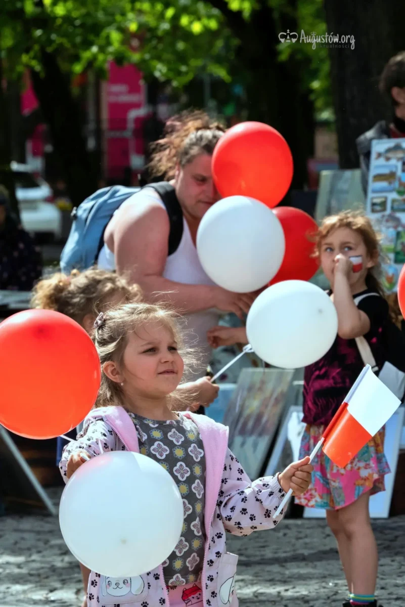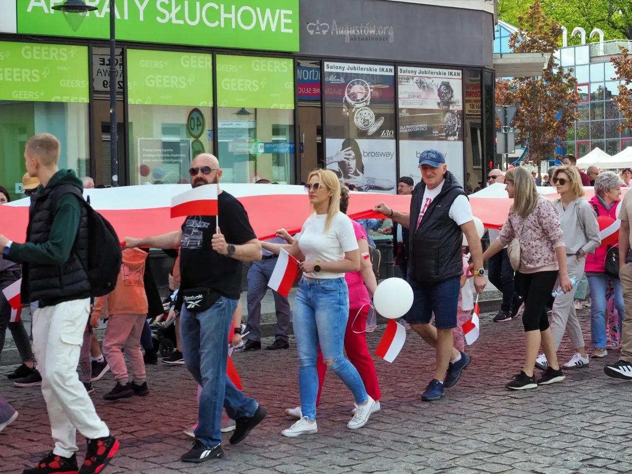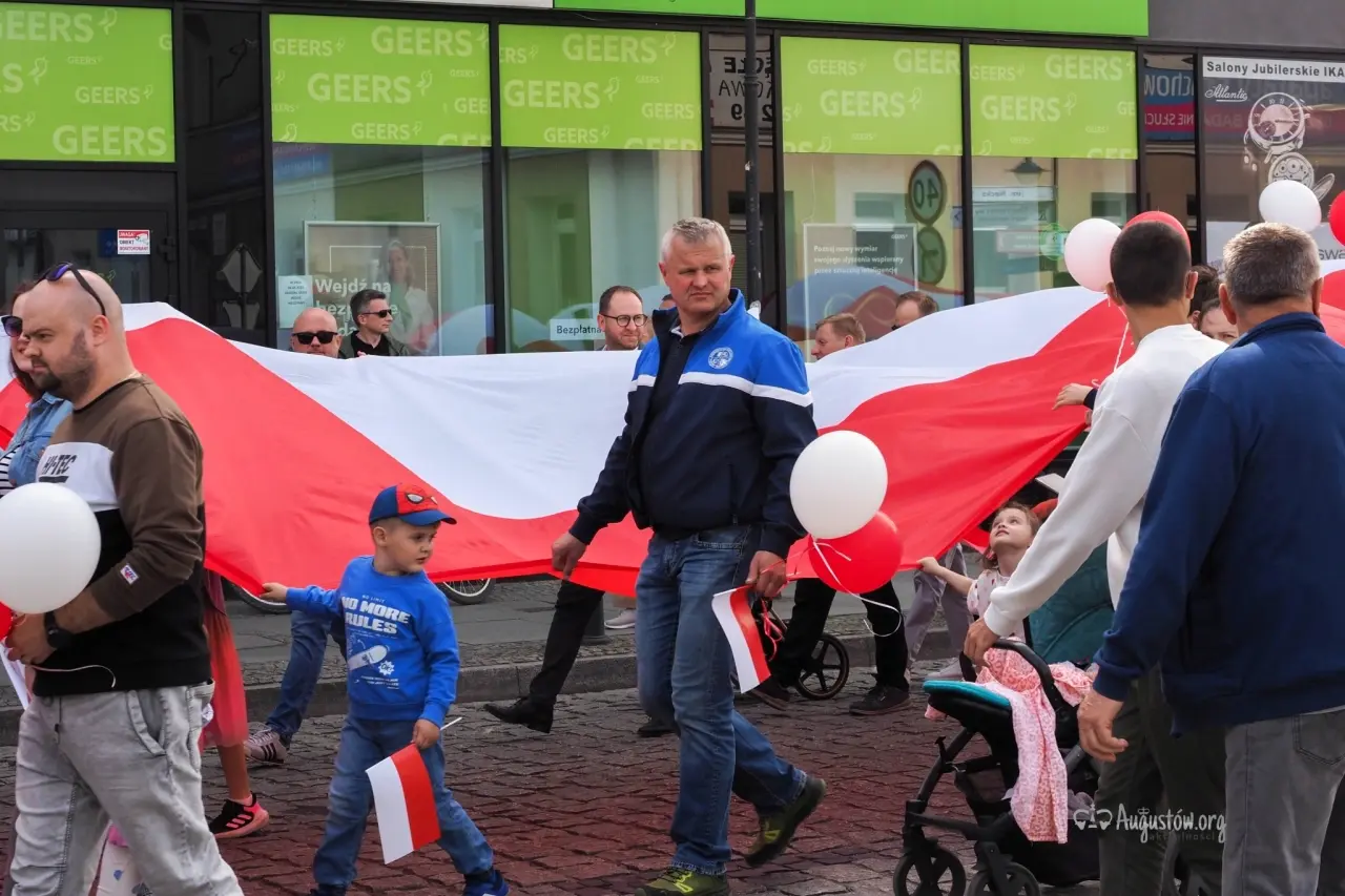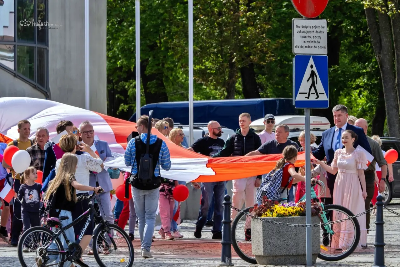 Dzień Flagi w Augustowie już po raz czwarty rozpoczął się na Rynku Zygmunta Augusta. Na placu pod Kolumną Z. Augusta głos zabrali Burmistrz Miasta oraz Starosta Powiatu. W swoich przemówieniach nawiązali do historycznego znaczenia świętą które ma wyrażać szacunek do flagi i propagować wiedzę o polskiej tożsamości i symbolach narodowych. Po uformowaniu kolumny mieszkańcy i goście, którzy wybrali Augustów na miejsce odpoczynku podczas długiego majowego weekendu, przemaszerowali ze 100. metrową flagą Polski na Błonia rzeki Netta. Tam odbył się piknik rodzinny z wieloma atrakcjami dla najmłodszych oraz koncert zespołu De Mono.