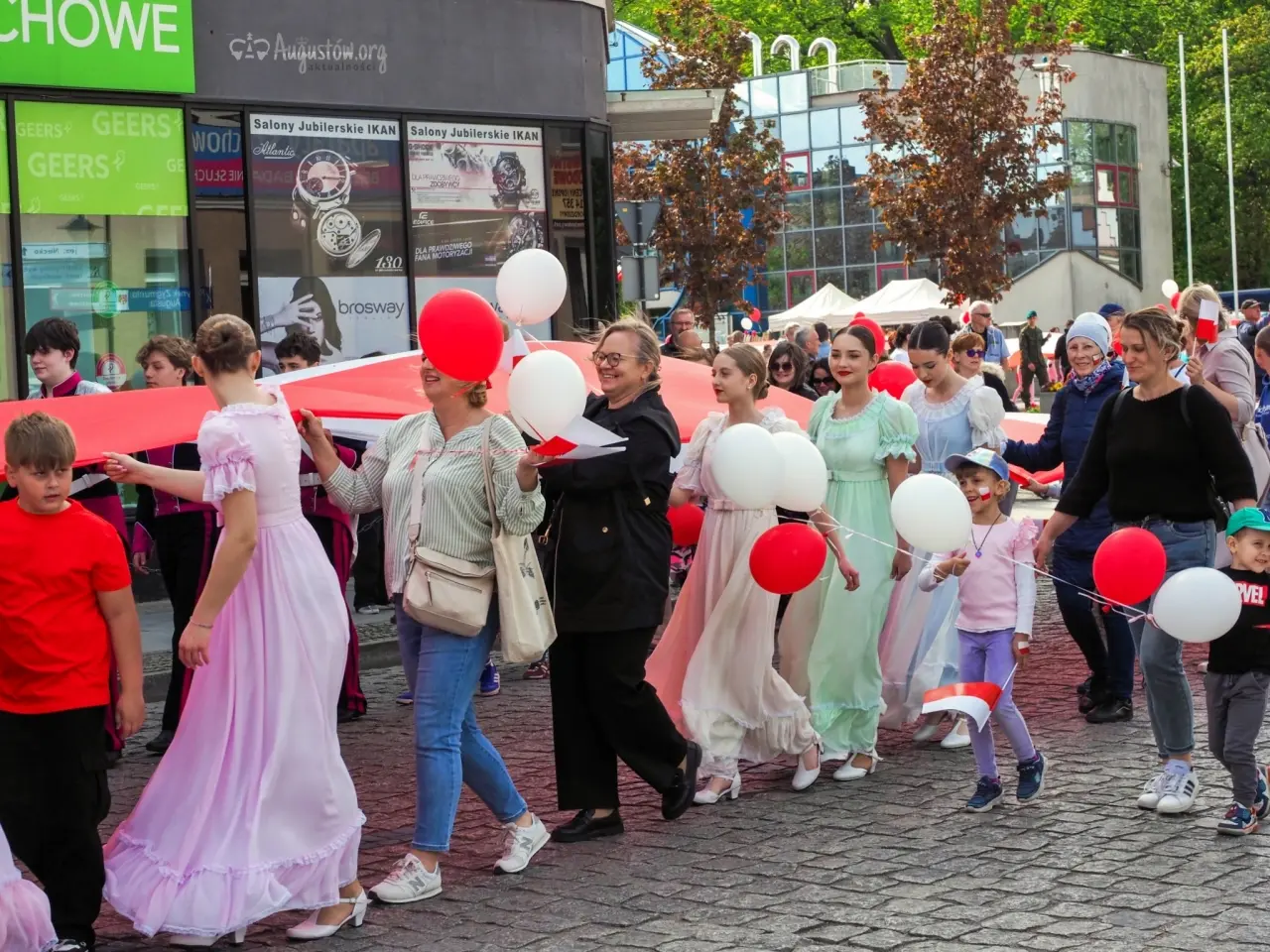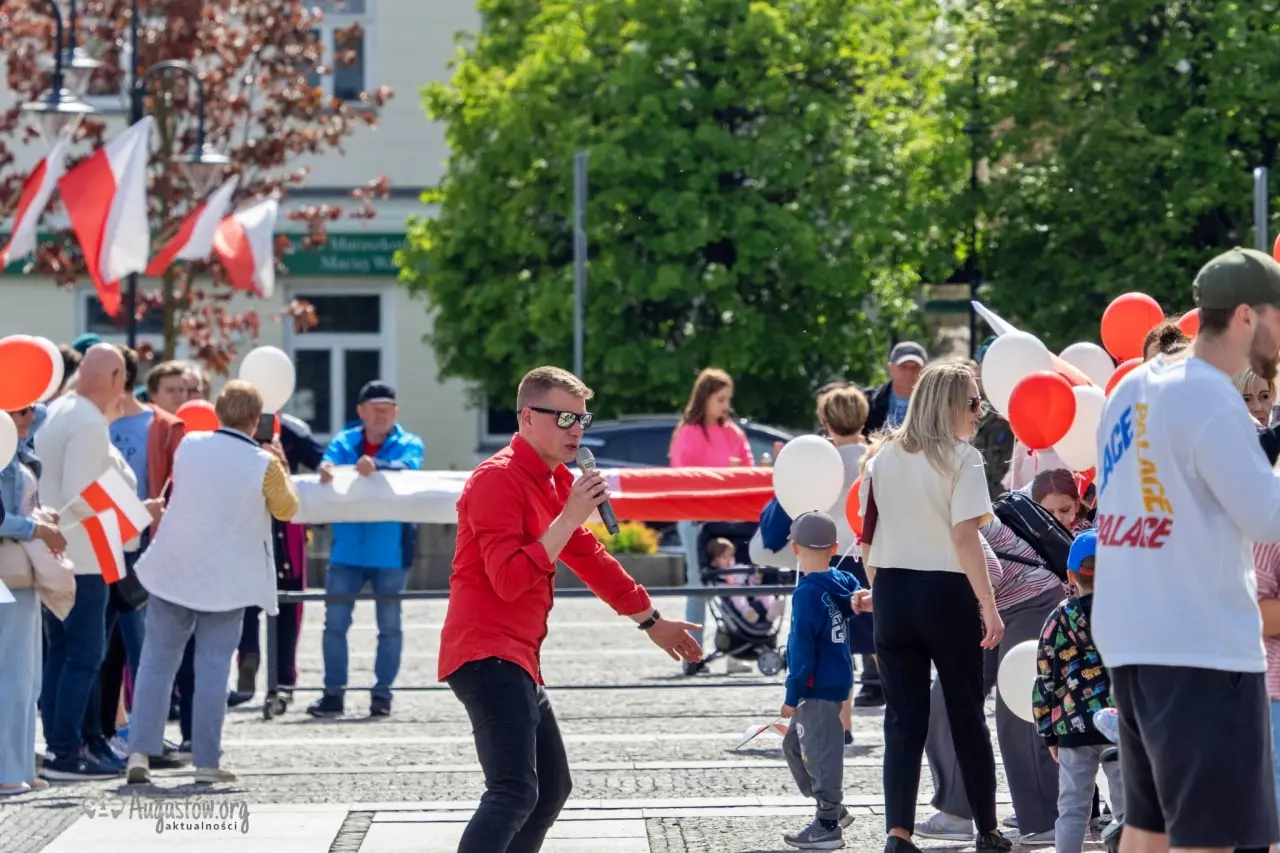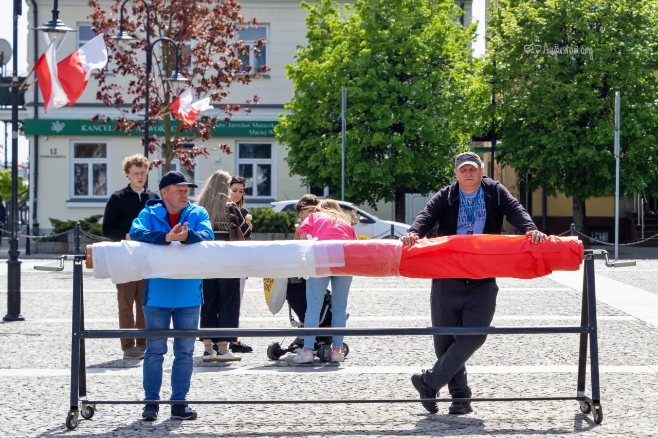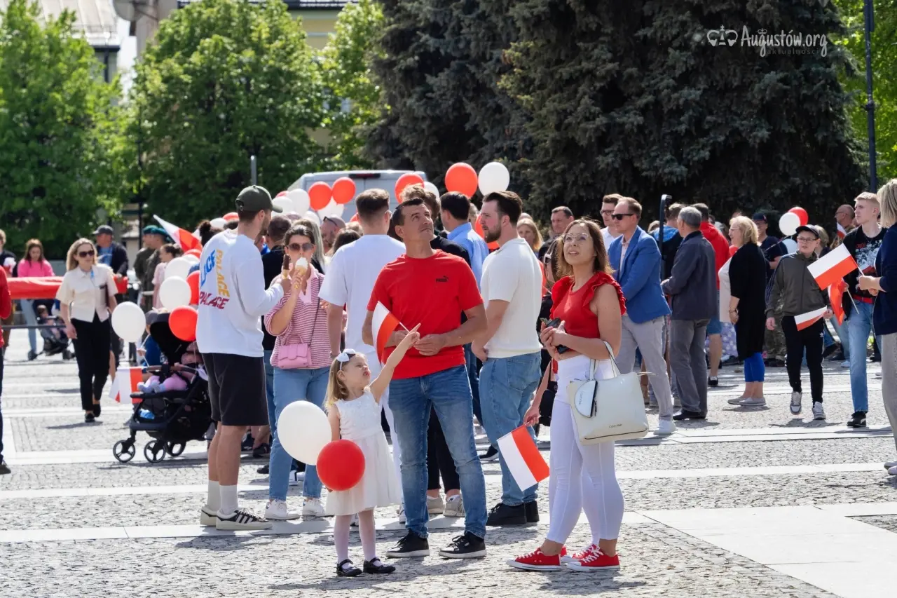 Dzień Flagi w Augustowie już po raz czwarty rozpoczął się na Rynku Zygmunta Augusta. Na placu pod Kolumną Z. Augusta głos zabrali Burmistrz Miasta oraz Starosta Powiatu. W swoich przemówieniach nawiązali do historycznego znaczenia świętą które ma wyrażać szacunek do flagi i propagować wiedzę o polskiej tożsamości i symbolach narodowych. Po uformowaniu kolumny mieszkańcy i goście, którzy wybrali Augustów na miejsce odpoczynku podczas długiego majowego weekendu, przemaszerowali ze 100. metrową flagą Polski na Błonia rzeki Netta. Tam odbył się piknik rodzinny z wieloma atrakcjami dla najmłodszych oraz koncert zespołu De Mono.