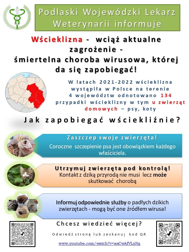 Celem skutecznego zwalczania wścieklizny, w kolejnej akcji szczepień – zostaną wyłożone na terenie województwa podlaskiego przynęty ze szczepionką przeciwko wściekliźnie– metodą zrzutów z samolotów, w planowanym terminie: