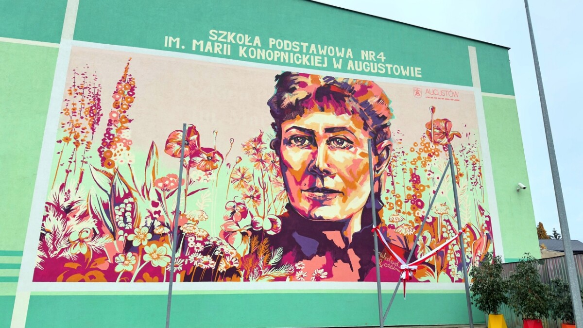 Uroczystość rozpoczęła się od odsłonięcia muralu z wizerunkiem Marii Konopnickiej, autorstwa Iwony Bielawskiej i Elwiry Dobkowskiej. Symboliczny gest połączył tradycję z nowoczesnością, przypominając uczniom, że wartości głoszone przez patronkę – wolność, godność i pracowitość – pozostają aktualne.