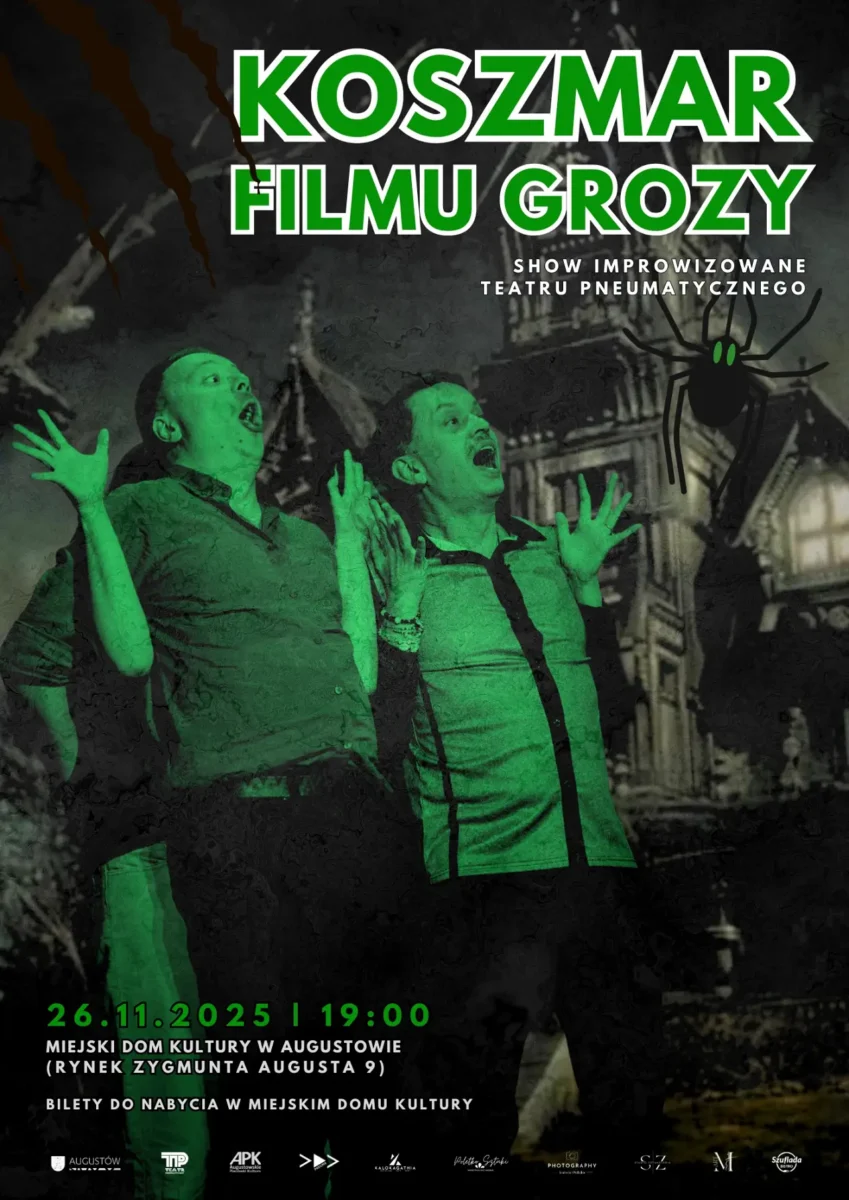 Augustowskie Placówki Kultury i Teatr Pneumatyczny serdecznie zapraszają na kolejne spotkanie imrpowizowane! W środę 26 listopada 2025 roku o godz. 19:00 w Sali widowiskowej MDK (Rynek Zygmunta Augusta 9, wejście od ul. Kościelnej, II piętro) Pneumatycy będą czekać na Państwa z zestawem gier improwizowanych.