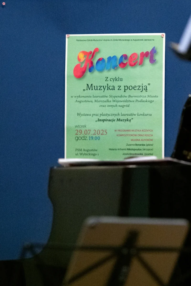 W lipcu w Państwowej Szkole Muzycznej I stopnia im. Emila Młynarskiego w Augustowie odbyła się wyjątkowa edycja cyklicznego wydarzenia „Muzyka z poezją” Wieczór ten, wypełniony dźwiękami najwyższej próby oraz poetyckim słowem, był prawdziwym świętem sztuki – zarówno dla wykonawców, jak i dla licznie zgromadzonej publiczności.