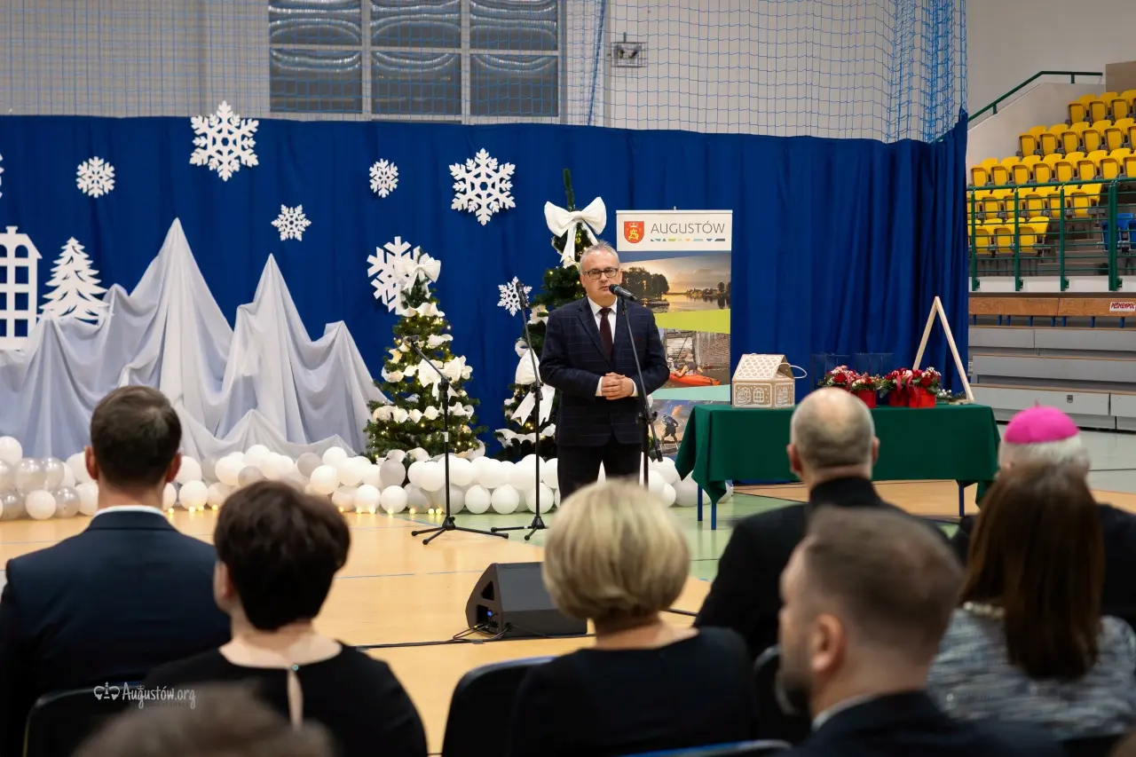 W piątek, 10 stycznia 2025 r. w Szkole Podstawowej nr 4 w Augustowie odbyło się coroczne Samorządowe Spotkanie Opłatkowe. Na zaproszenie Jego Ekscelencji Księdza Biskupa Jerzego Mazura Biskupa Diecezji Ełckiej oraz Mirosława Karolczuka Burmistrza Miasta Augustowa, organizatorów uroczystości, w spotkaniu uczestniczyli samorządowcy, przedstawiciele władz publicznych, księża, pracownicy miejskich i powiatowych instytucji, organizacji pozarządowych oraz media.