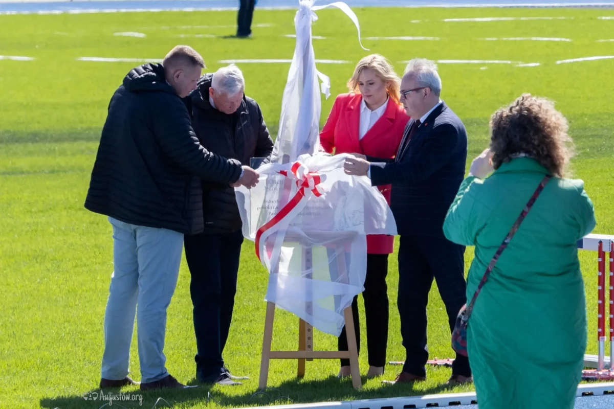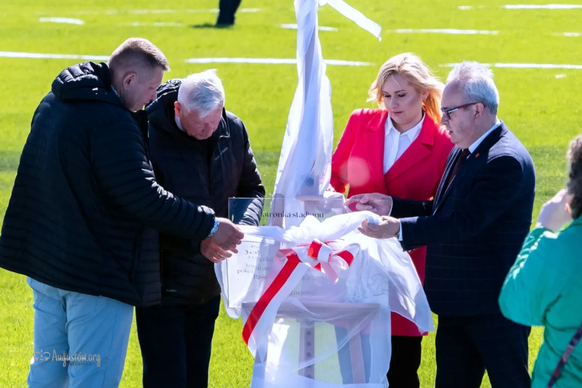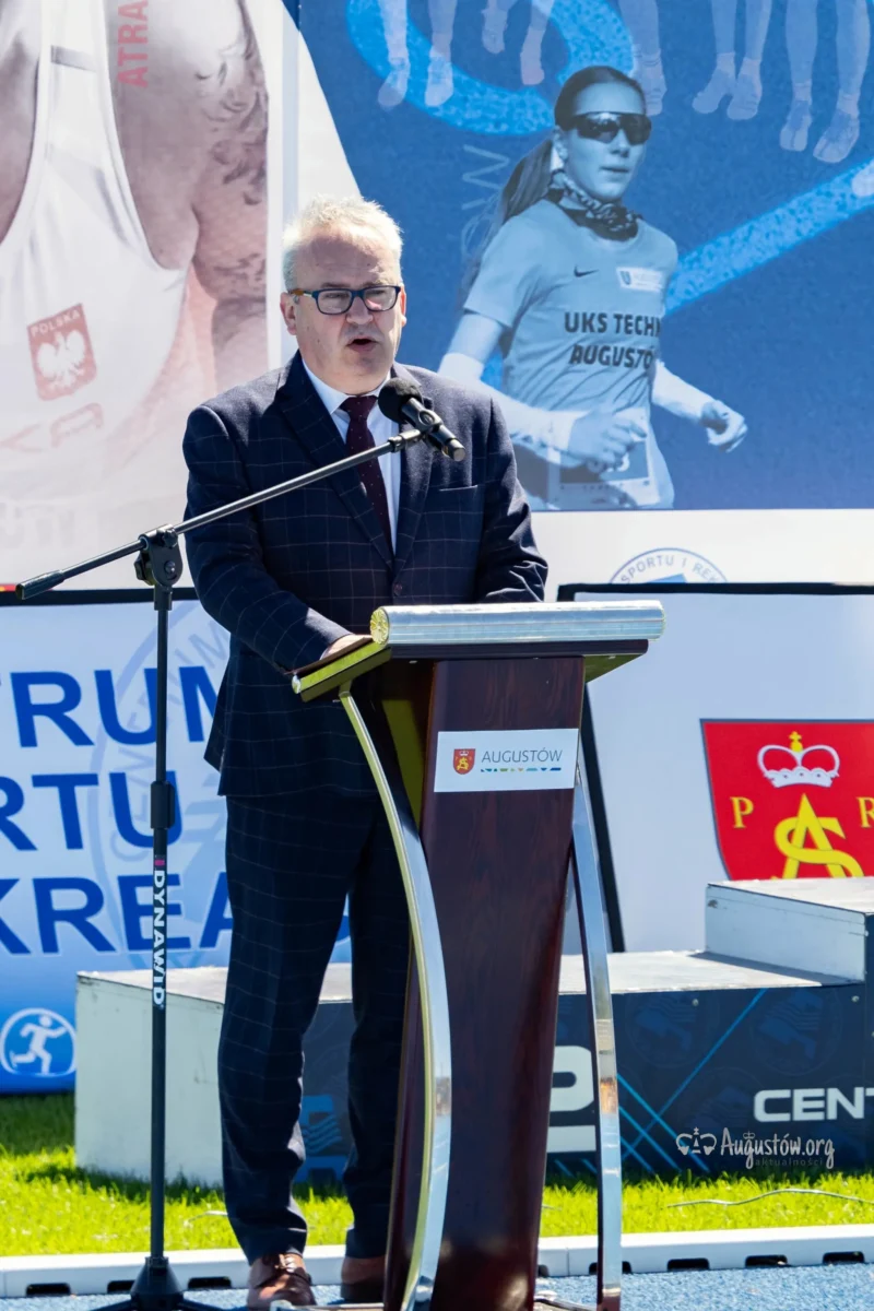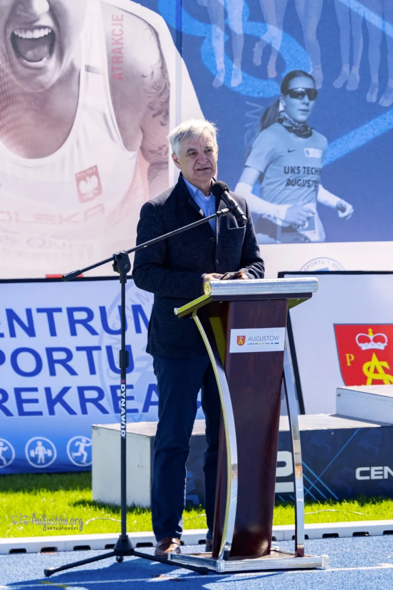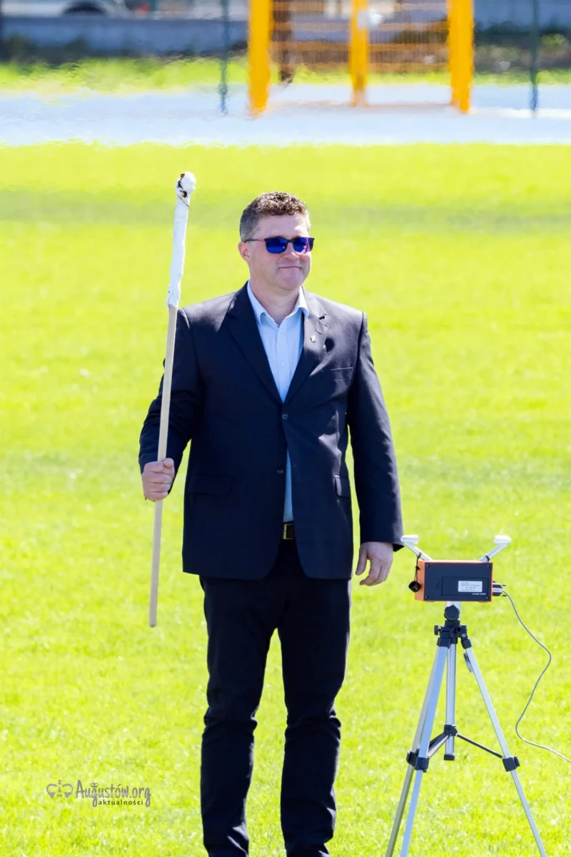 Zgromadzonych powitał burmistrz Augustowa Mirosław Karolczuk. W swoim wystąpieniu przybliżył historię działań, które doprowadziły do powstania nowego obiektu sportowego w Augustowie i podziękował wszystkim osobom, które wniosły swój wkład w pomyślną realizację projektu modernizacji stadionu.