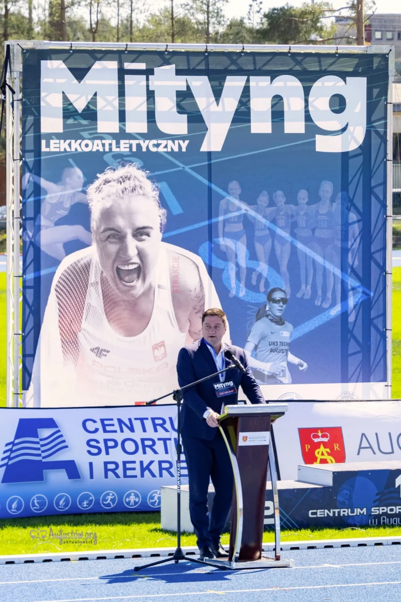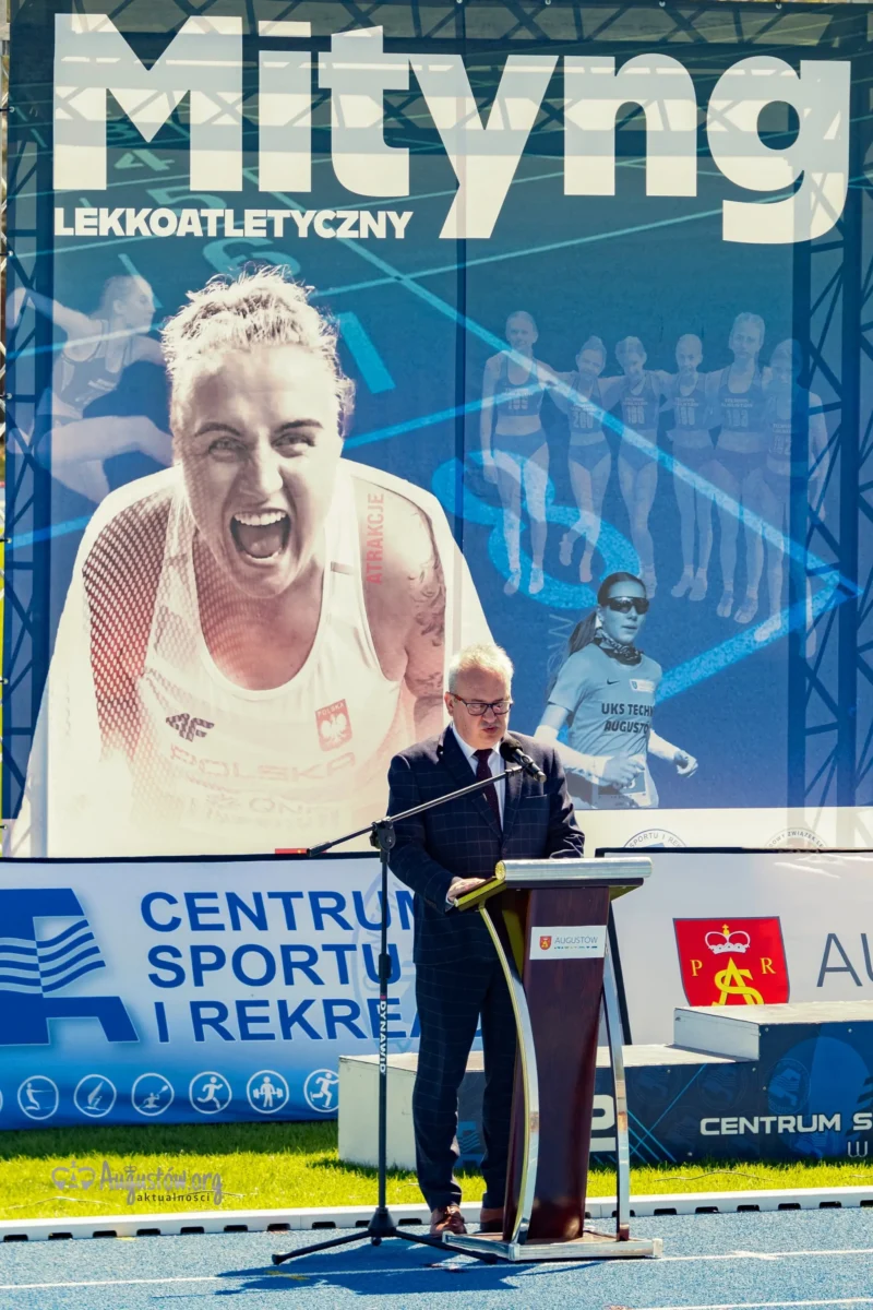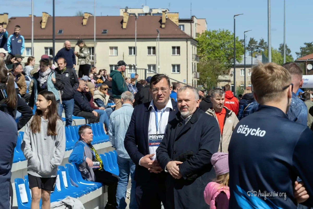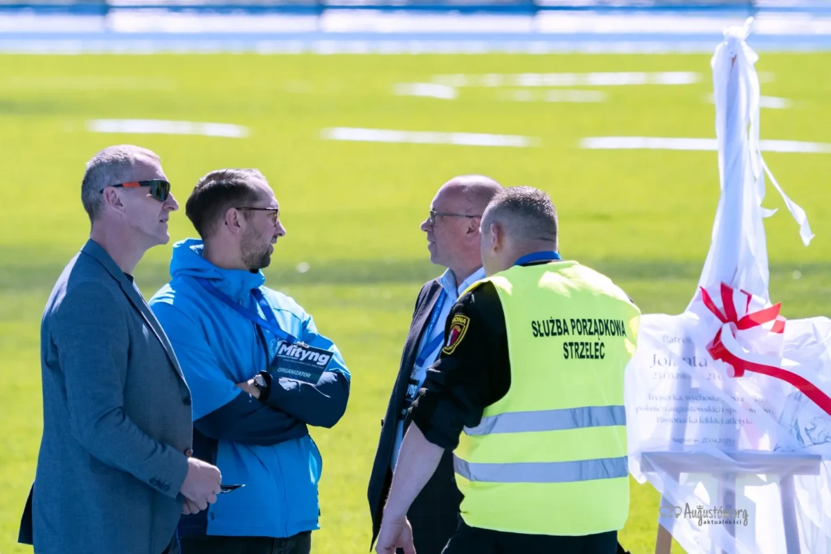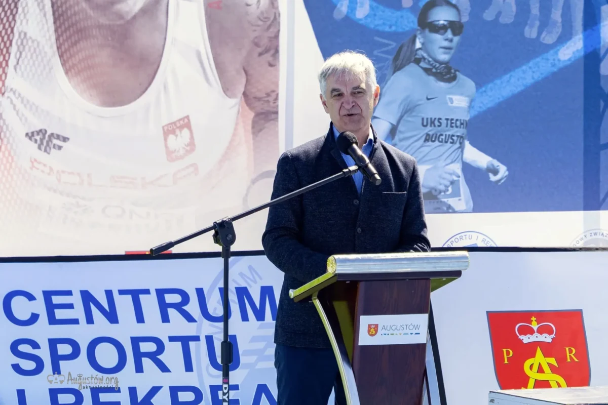 Zgromadzonych powitał burmistrz Augustowa Mirosław Karolczuk. W swoim wystąpieniu przybliżył historię działań, które doprowadziły do powstania nowego obiektu sportowego w Augustowie i podziękował wszystkim osobom, które wniosły swój wkład w pomyślną realizację projektu modernizacji stadionu.