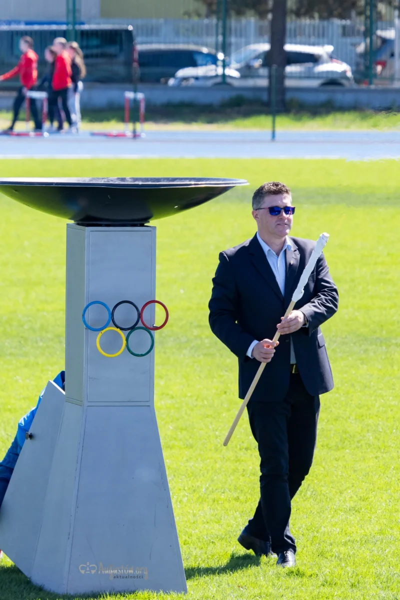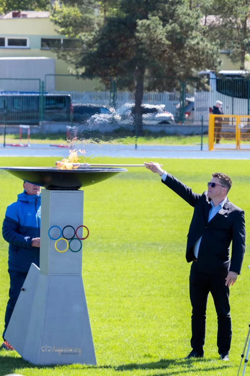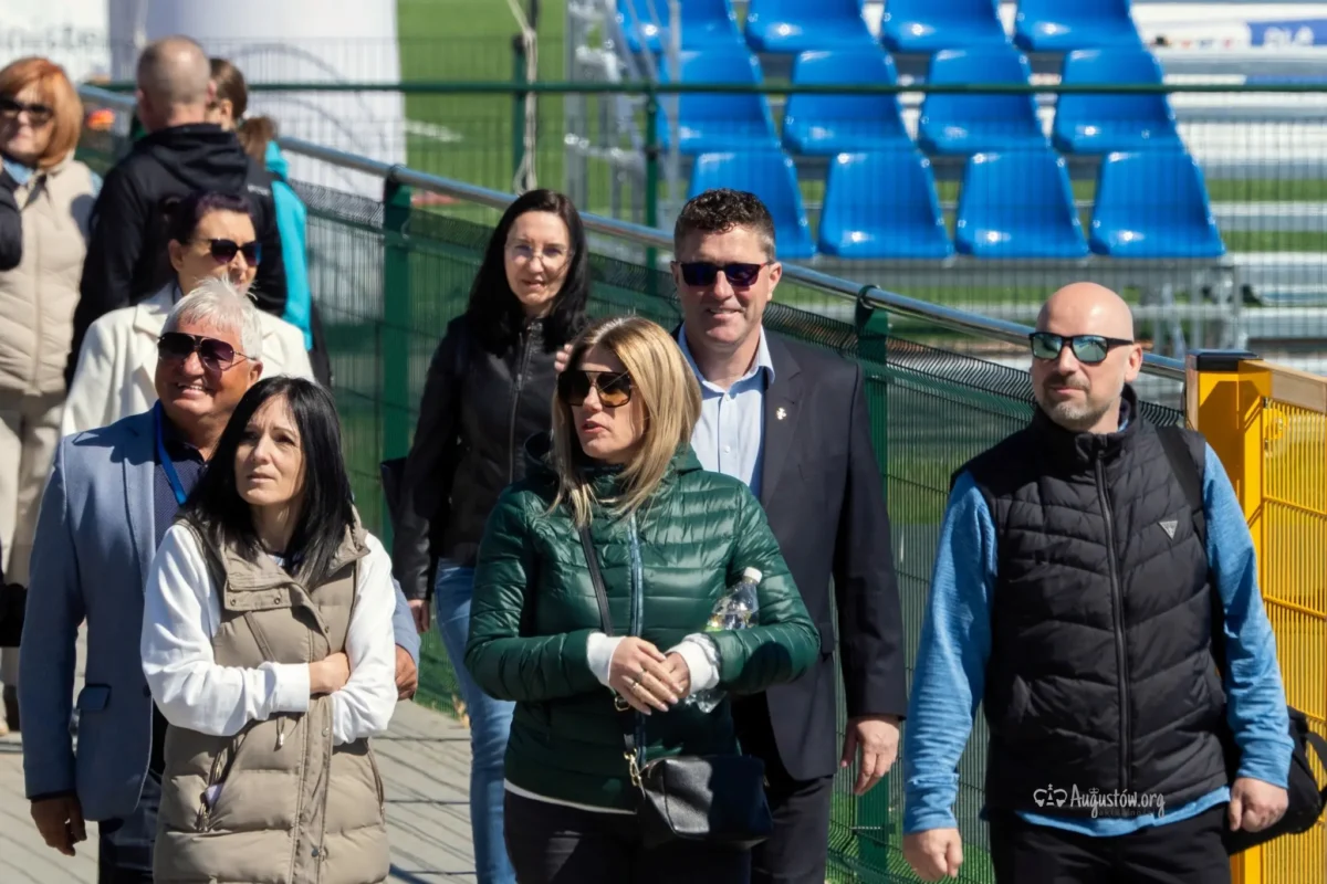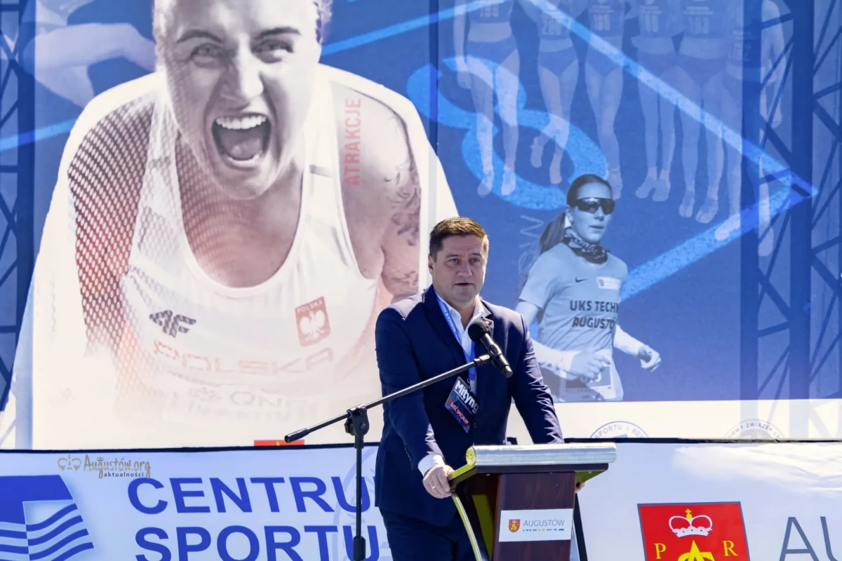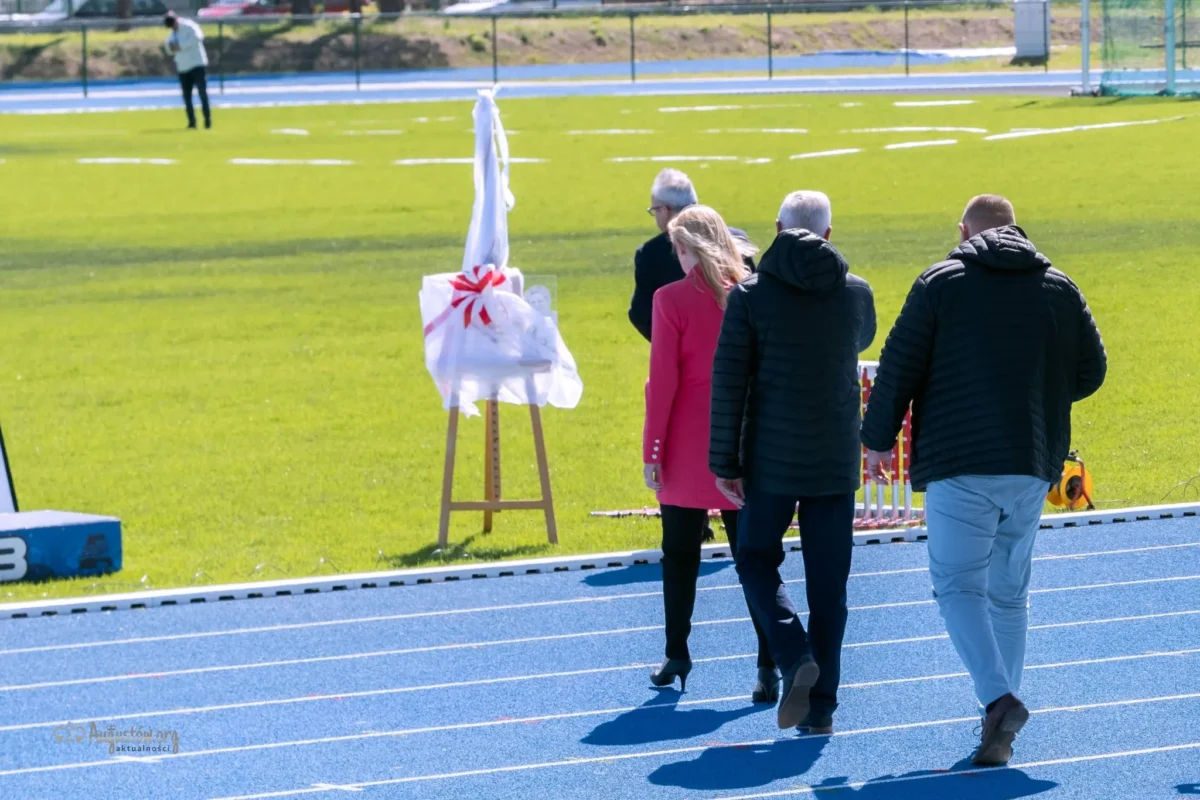 Zgromadzonych powitał burmistrz Augustowa Mirosław Karolczuk. W swoim wystąpieniu przybliżył historię działań, które doprowadziły do powstania nowego obiektu sportowego w Augustowie i podziękował wszystkim osobom, które wniosły swój wkład w pomyślną realizację projektu modernizacji stadionu.