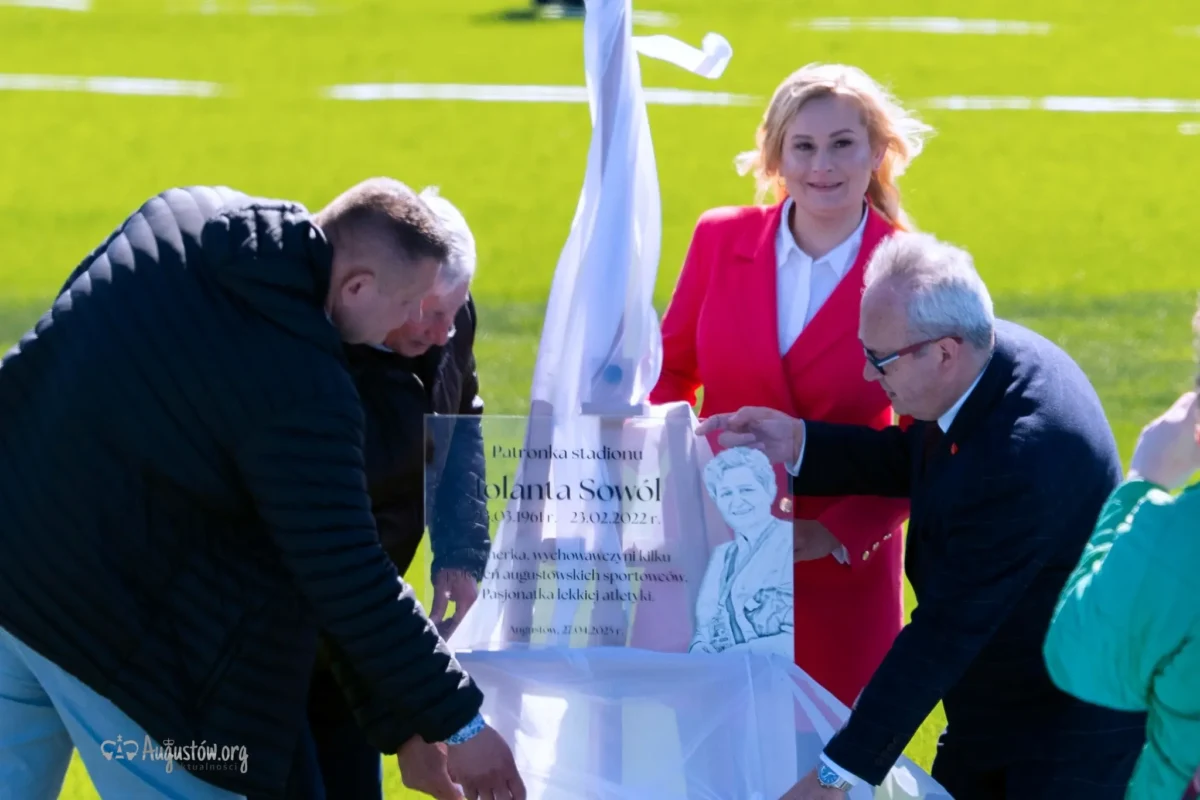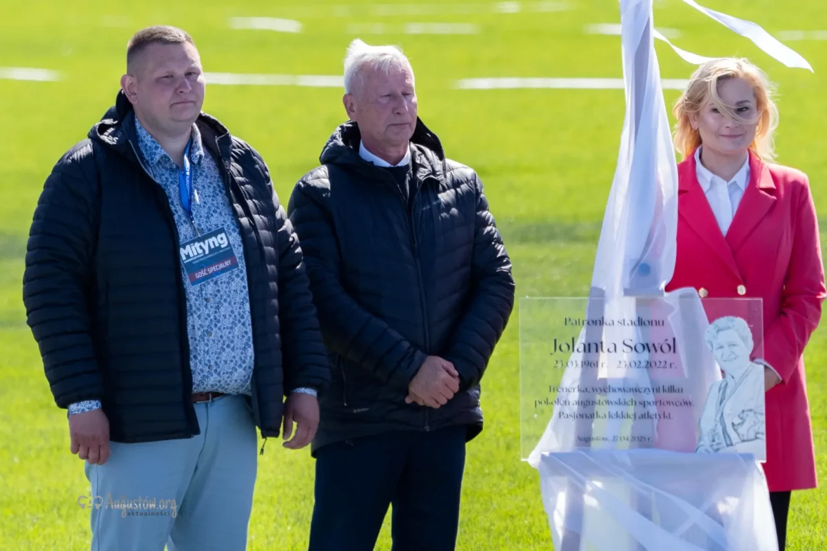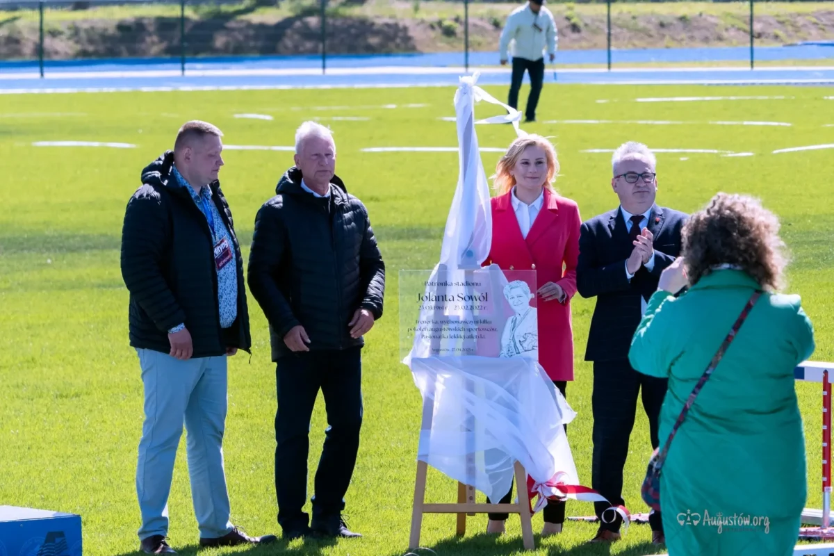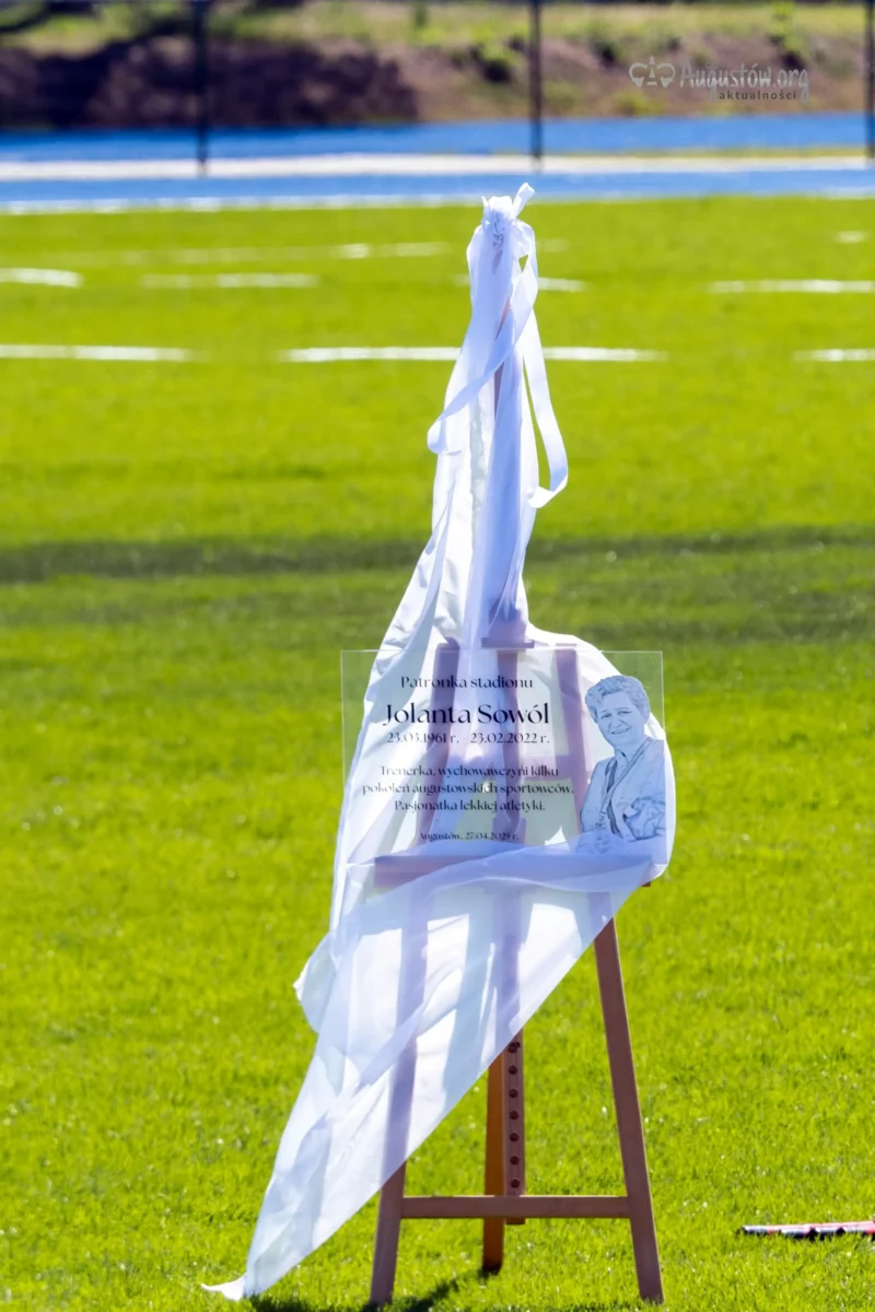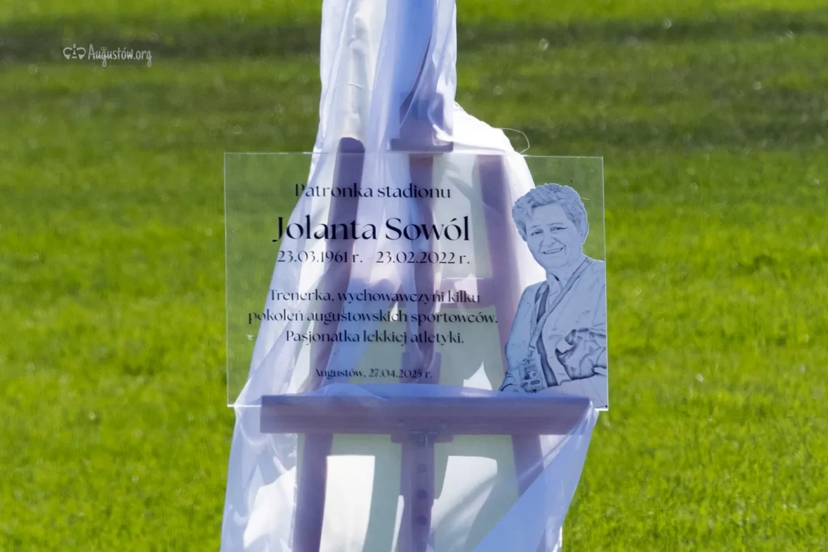 Stadionowi nadano imię Jolanty Sowól, zmarłej w 2022 roku trenerki lekkoatletyki i nauczycielki, która przez całe swoje życie związana była z tą dyscypliną sportu. Nie tylko zaszczepiła pokoleniom swoich wychowanków pasję i miłość do królowej sportu, ale prowadziła szerokie działania mające na celu wzrost zainteresowania młodych ludzi tym sportem i tworzenia lepszych warunków do jego uprawiania. Wychowała pokolenia zawodników odnoszących sukcesy w zawodach od okręgowych do igrzysk olimpijskich. Jej wychowanką jest m.in. Joanna Fiodorow, trzykrotna finalistka igrzysk olimpijskich, a dziś trenerka innego mistrza olimpijskiego, Wojciecha Nowickiego.