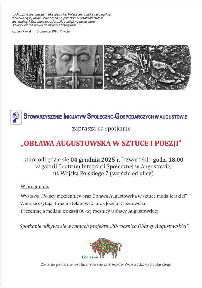 W imieniu Stowarzyszenia Inicjatyw Społeczno-Gospodarczych w Augustowie, zapraszam na spotkania: