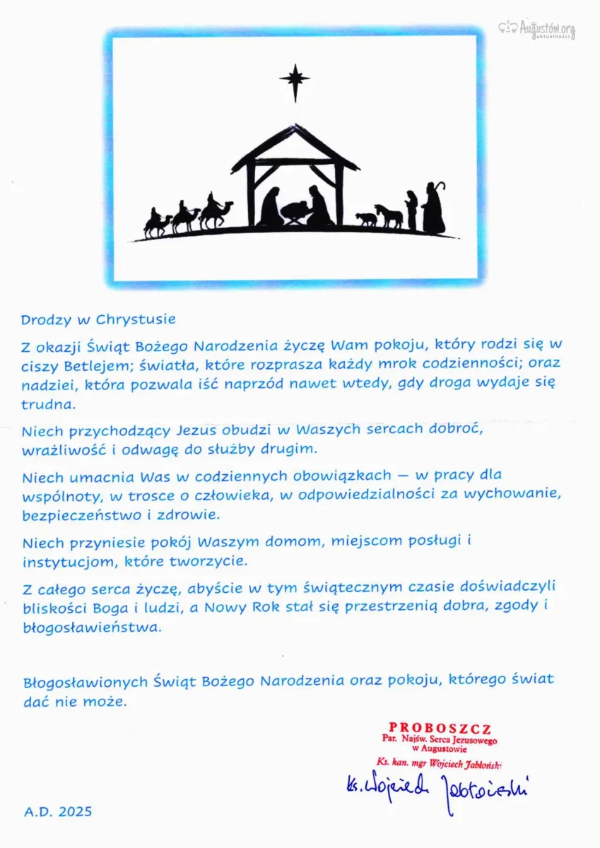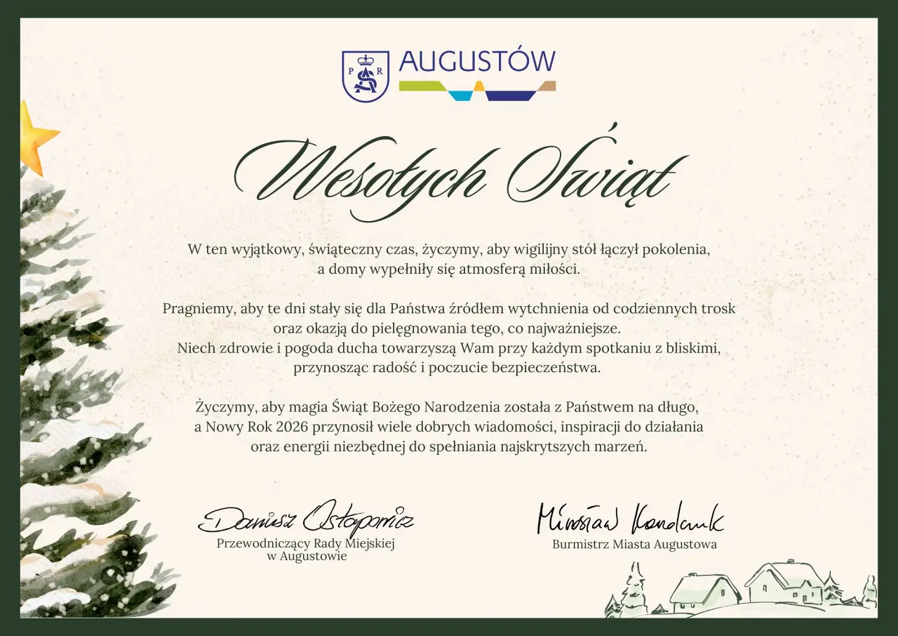 Tradycyjnie w tym okresie przygotowujemy na naszym portalu miejsce, w którym dodawane są Wasze życzenia świąteczne. Kartki, które prześlecie na adres naszej redakcji: redakcja@augustow.org dodamy do galerii pod tym tekstem. Zamieszczamy je według kolejności nadesłania.