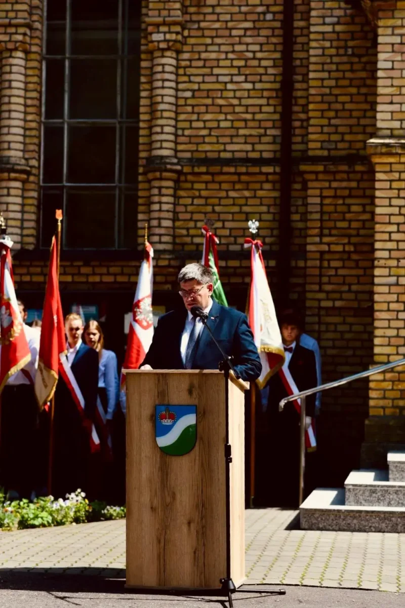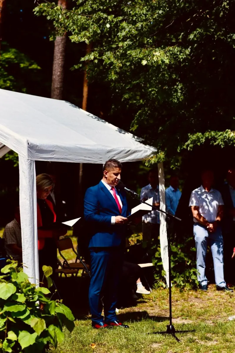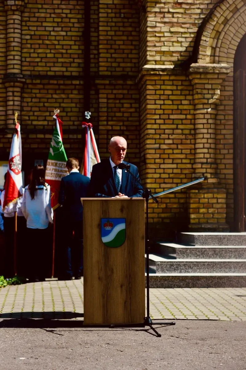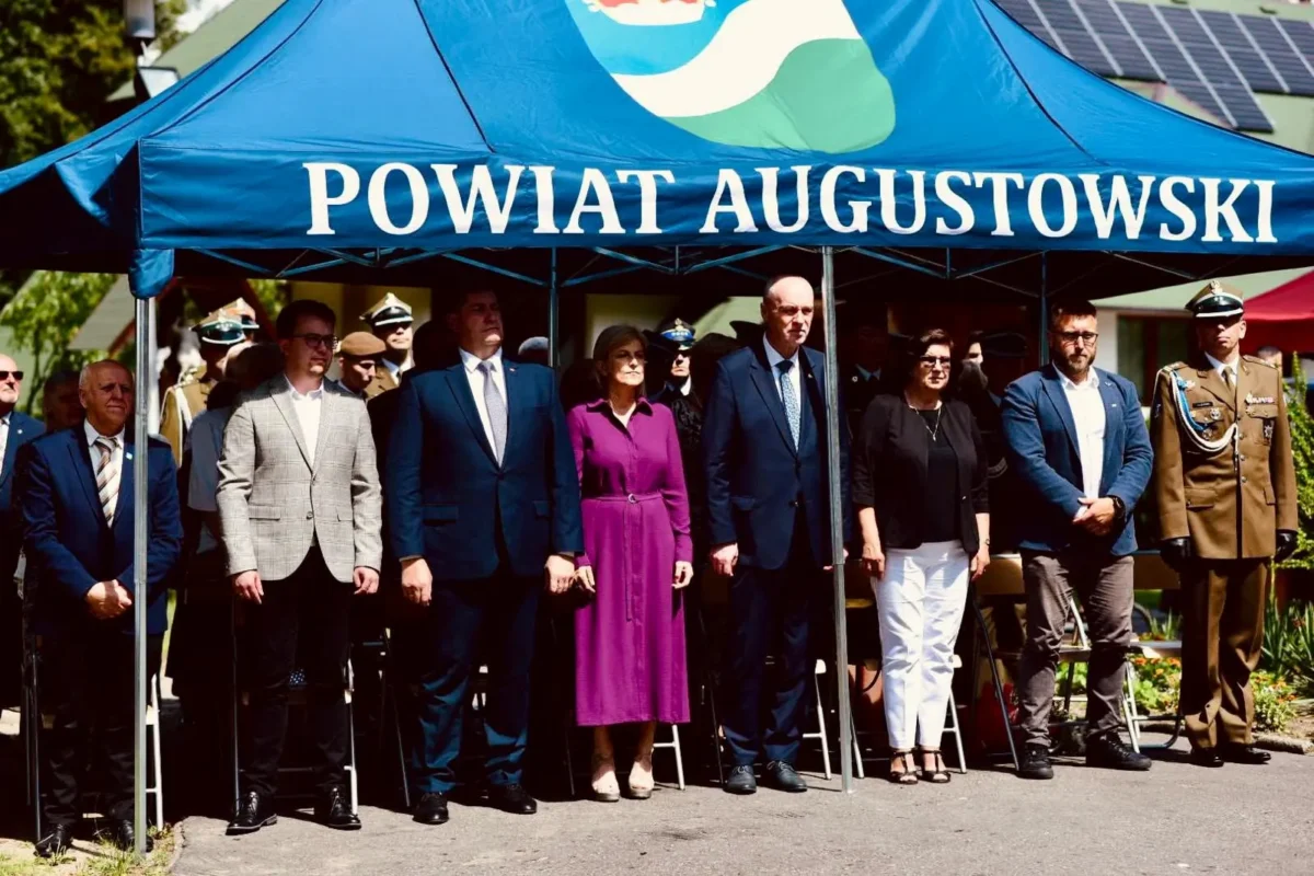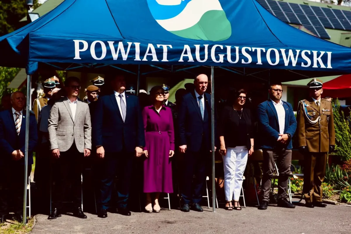 Po nabożeństwie, uczestnicy uroczystości udali się na plac pod kościołem, gdzie miała miejsce część oficjalna obchodów. Jako pierwszy głos zabrał Starosta Augustowski Piotr Rusiecki, który powitał przybyłych gości.