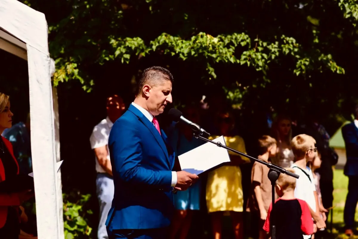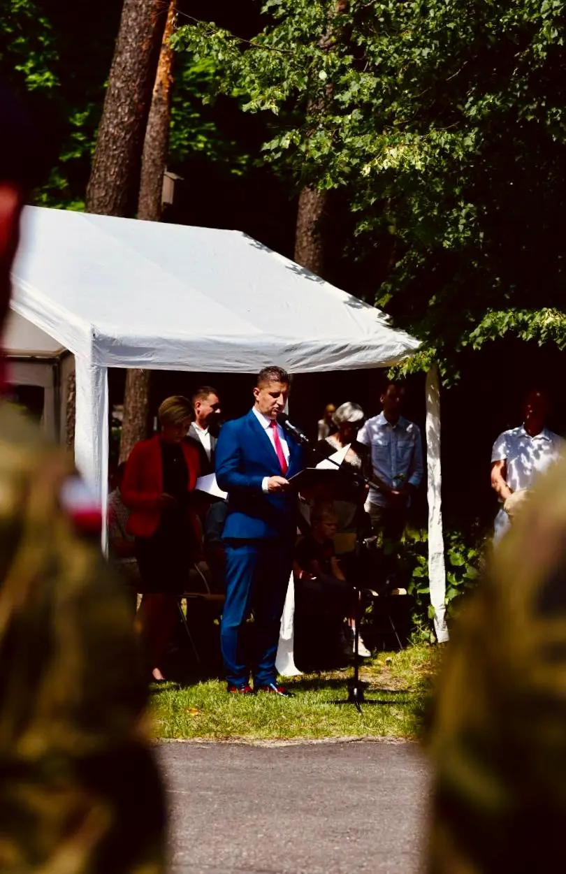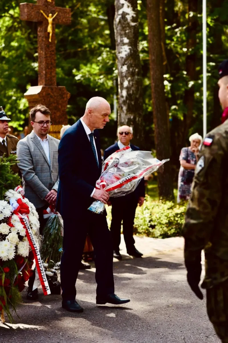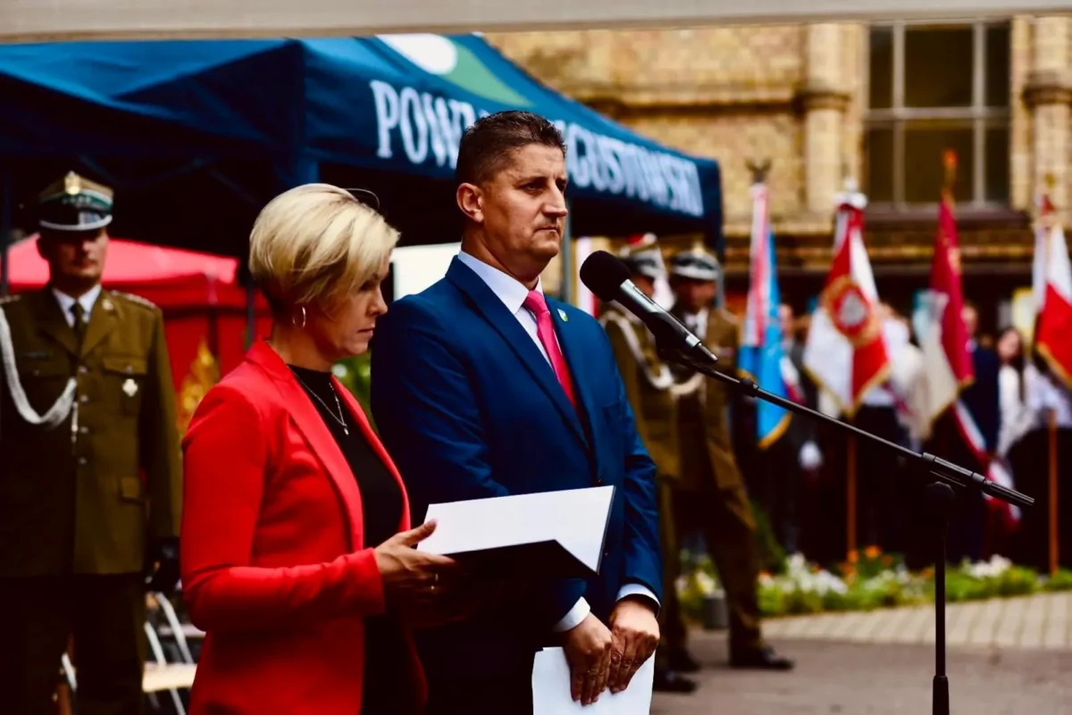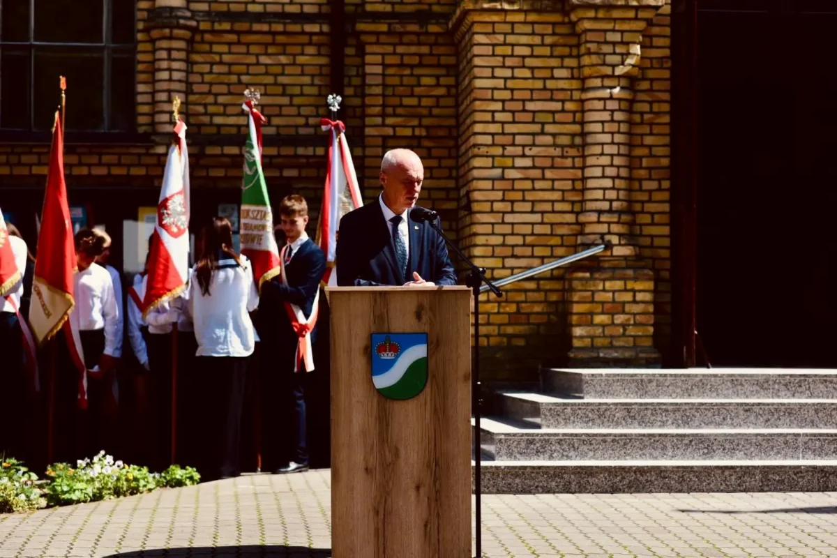 Po nabożeństwie, uczestnicy uroczystości udali się na plac pod kościołem, gdzie miała miejsce część oficjalna obchodów. Jako pierwszy głos zabrał Starosta Augustowski Piotr Rusiecki, który powitał przybyłych gości.