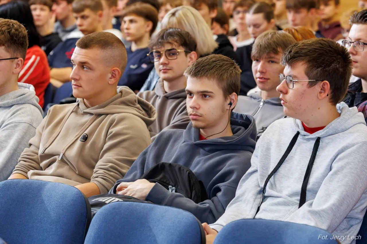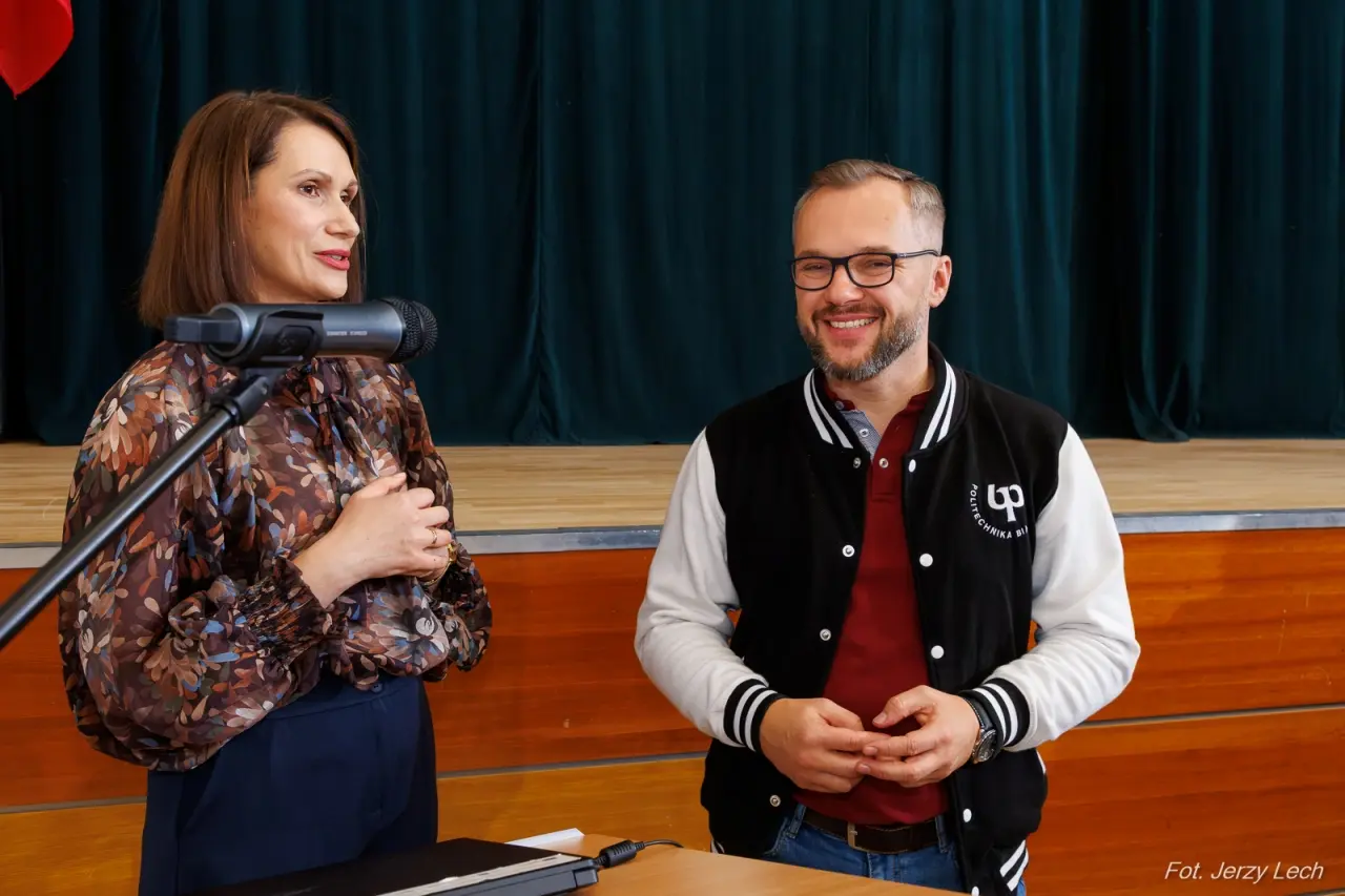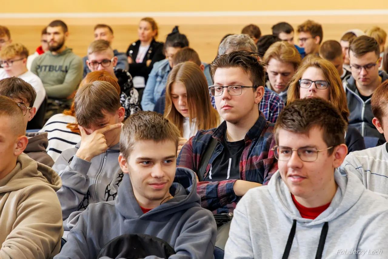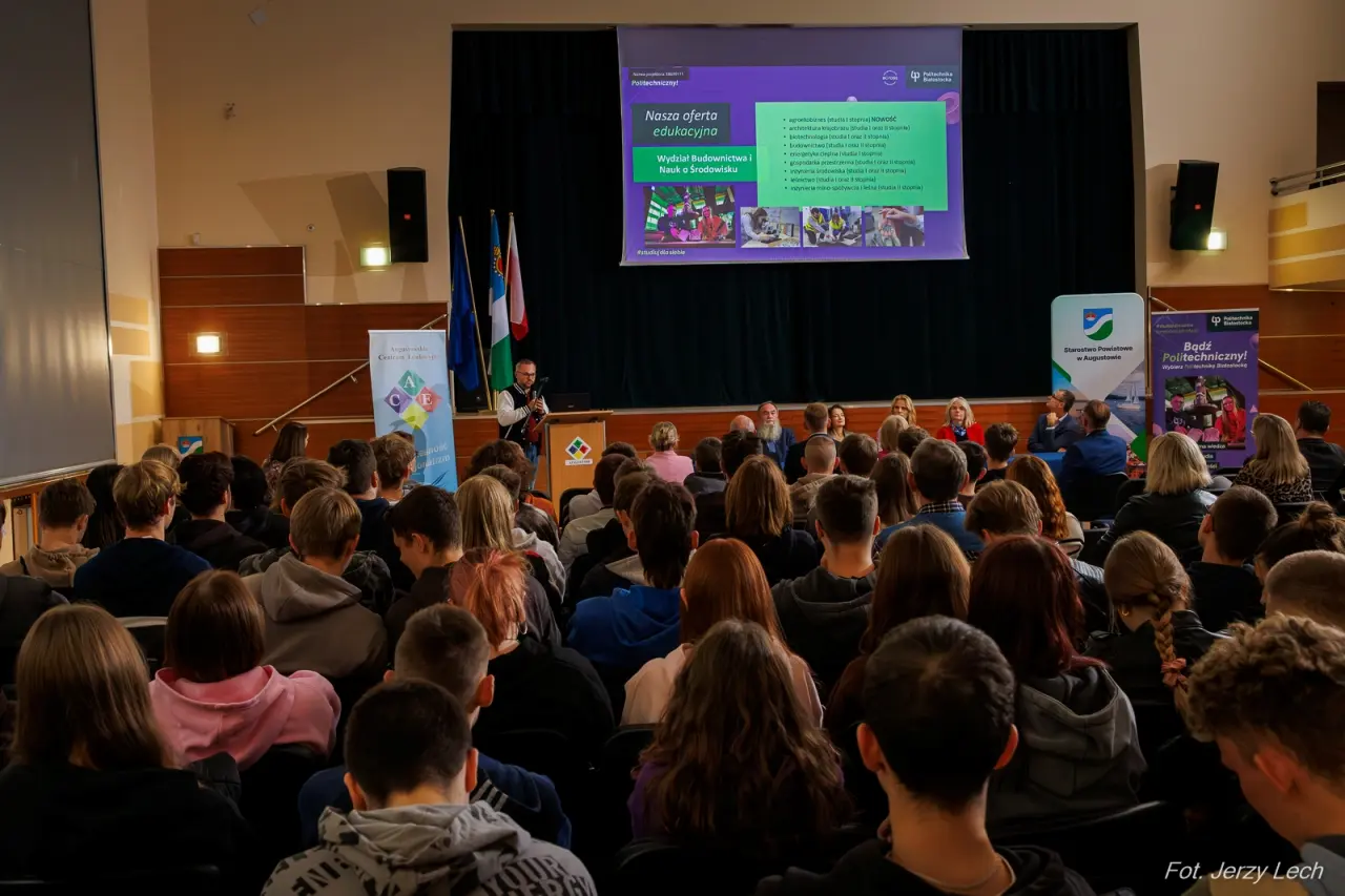 Spotkanie z władzami Politechniki Białostockiej wzbudziło zainteresowanie uczniów, z chęcią zadawali pytania, przysłuchiwali się szczegółom oferty.