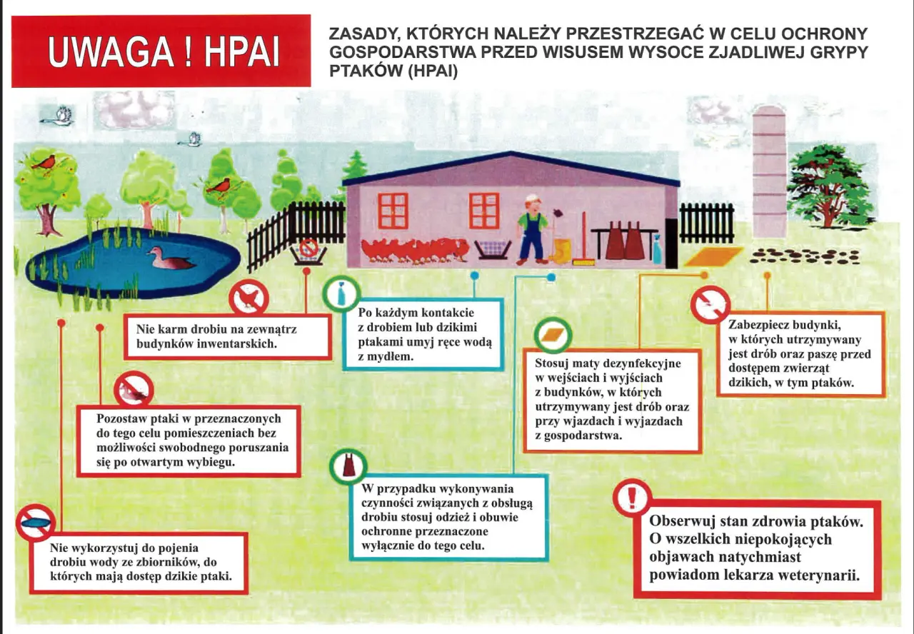Przypominamy, że zarówno HPAI (wysoce zjadliwa grypa ptaków), jak i ND (rzekomy pomór drobiu) są chorobami zakaźnymi zwierząt, podlegającymi obowiązkowi zwalczania. Wdrożenie odpowiednich środków zapobiegawczych jest kluczowe dla ochrony zdrowia zwierząt i ograniczenia strat w gospodarstwach.