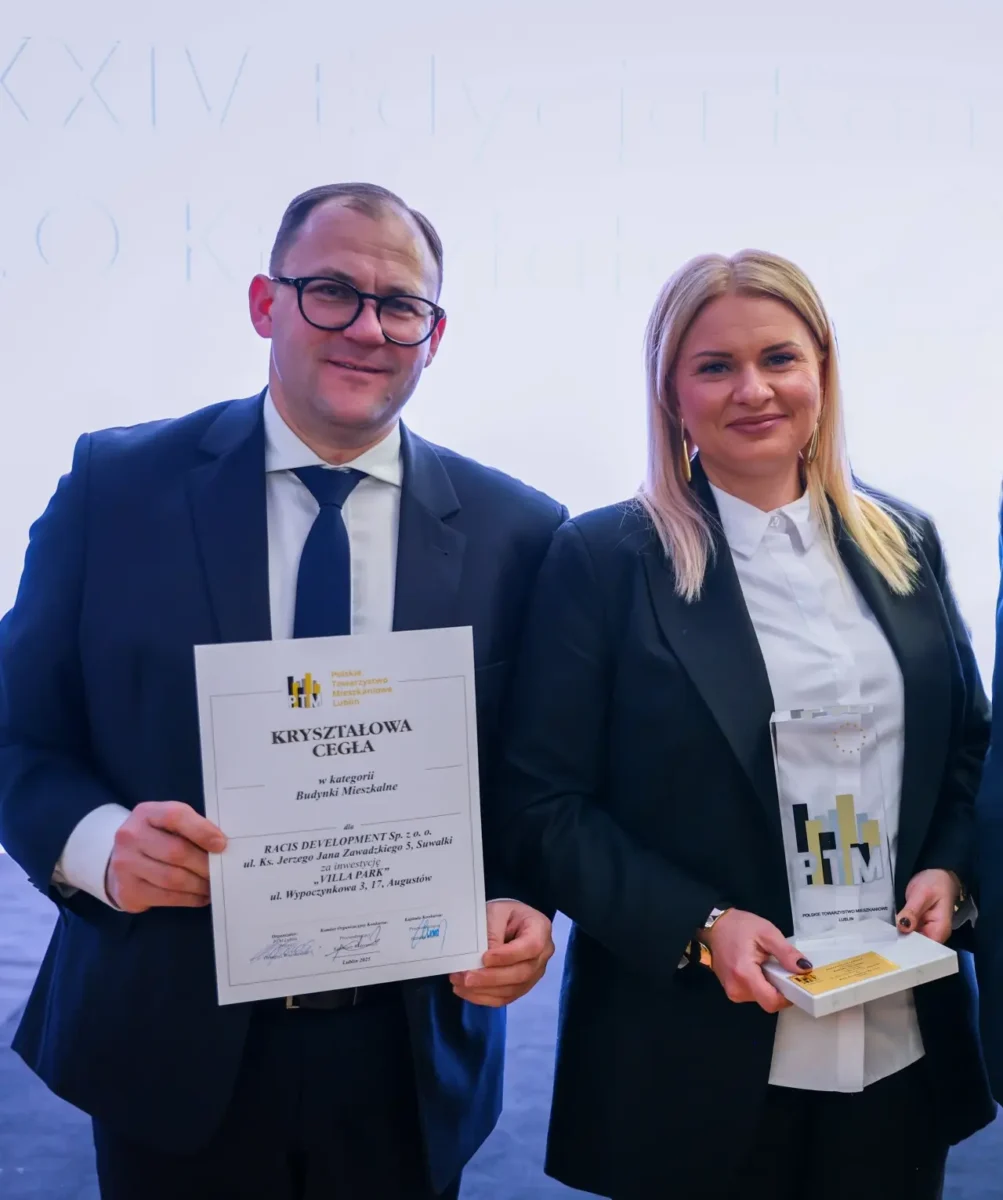 Nagrodę w imieniu RACIS DEVELOPMENT odebrał Zarząd Firmy – Szymon Racis i Iwona Sofińska