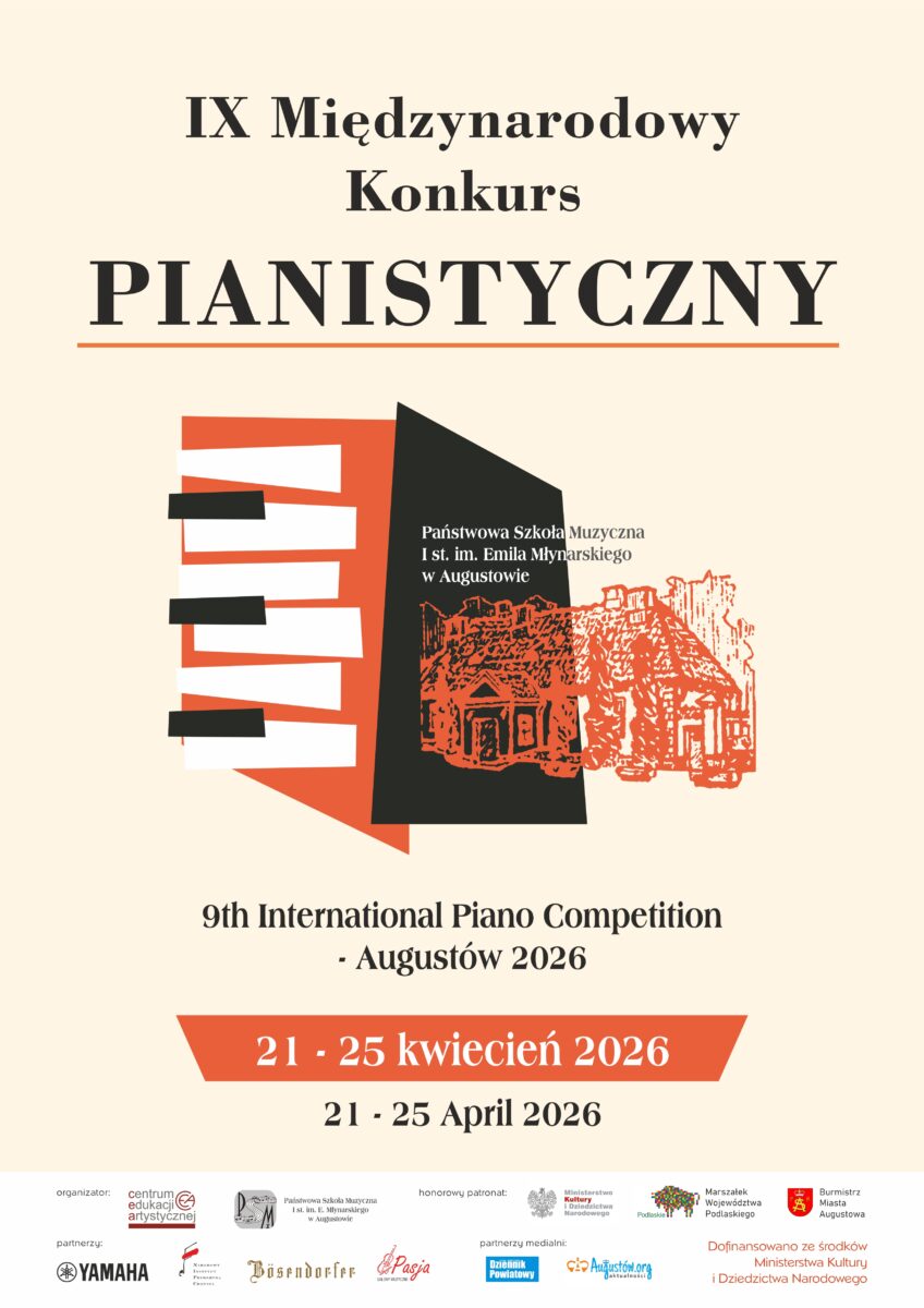 W Augustowie odbędzie się IX Międzynarodowy Konkurs Pianistyczny, który co roku przyciąga młodych muzyków z kraju i zagranicy. Wydarzenie organizowane przez Państwową Szkołę Muzyczną I stopnia im. Emila Młynarskiego to okazja do zaprezentowania talentu, wymiany doświadczeń oraz spotkania z muzyką na wysokim poziomie.