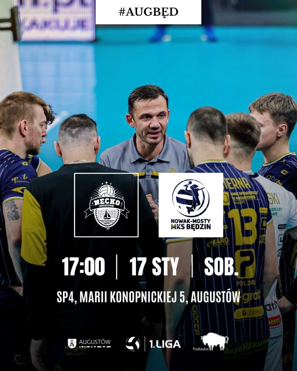 W sobotę, 17 stycznia o godzinie 17:00, w hali SP4 przy ul. Marii Konopnickiej 5 w Augustowie odbędzie się ligowe spotkanie siatkarskie, w którym gospodarze zmierzą się z zespołem Nowak-Mosty MKS Będzin. Będzie to rewanż za wcześniejszy, niezwykle wyrównany mecz obu drużyn, zakończony pięciosetowym zwycięstwem zespołu z Będzina.