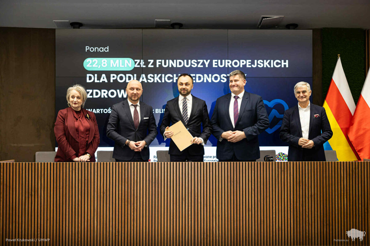 Szpital w Augustowie otrzymał ponad milion złotych wsparcia na doposażenie poradni ambulatoryjnej opieki specjalistycznej. Umowa na realizację projektu została podpisana w Urzędzie Marszałkowskim Województwa Podlaskiego przez dyrektora SP ZOZ w Augustowie Adama Dębskiego oraz przedstawicieli samorządu województwa: Marszałka Łukasza Prokoryma, Wicemarszałek Wiesławę Burnos i Członka Zarządu Województwa Podlaskiego-Bogdana Dyjuka. W wydarzeniu uczestniczył także Starosta Powiatu Augustowskiego- Piotr Rusiecki.