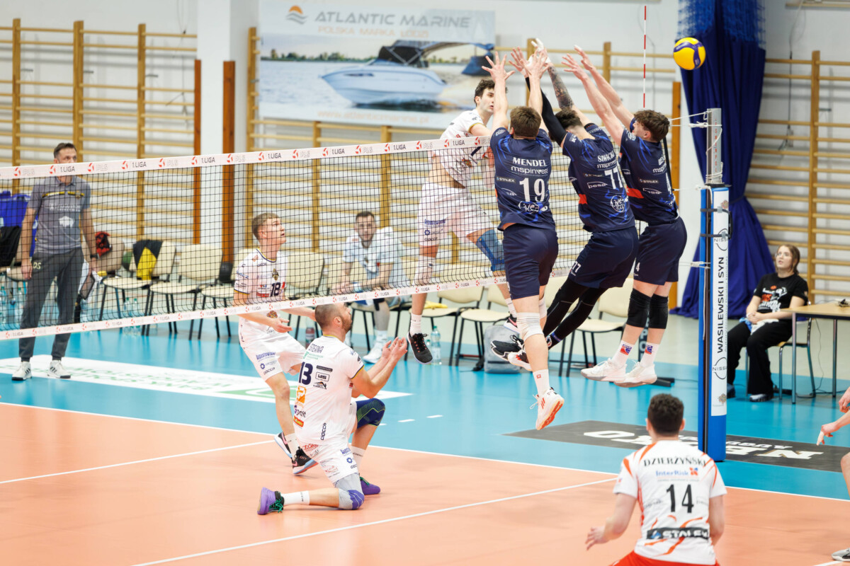 Czwartkowe spotkanie otworzył nieudanym atakiem Patryk Mendel (1:0). Gospodarze szybko zbudowali trzypunktową przewagę (6:3), ale pod dwóch kolejnych akcjach przytrafił im się przestój. Jego efektem była starta pięciu punktów z rzędu i ze stanu 7:4 momentalnie zrobiło się 7:9. W dalszej części pierwszej odsłony meczu Augustowianie kilkukrotnie odrabiali straty, niwelując się z trzech „oczek” do jednego na korzyść rywali. Za ostatnim razem skończyło się wynikiem 21:22, a następnie trzema punktami z rzędu w jednym ustawieniu, kiedy na zagrywce znajdował się Emil Narkowicz (21:25).
