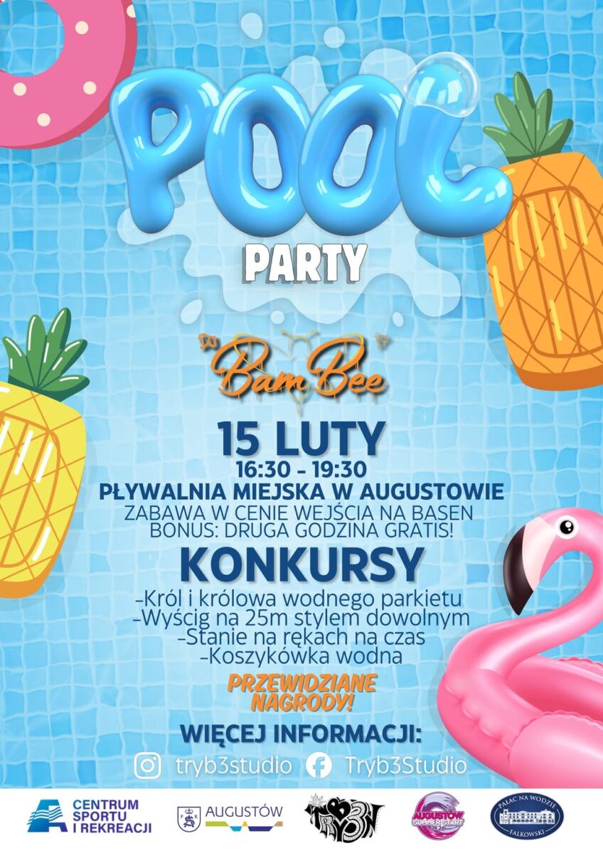 Na Pływalni Miejskiej w Augustowie szykuje się wyjątkowe wydarzenie. 15 lutego po raz pierwszy w historii obiektu odbędzie się POOL PARTY – impreza łącząca wodną zabawę, muzykę i letni klimat w samym środku zimy.