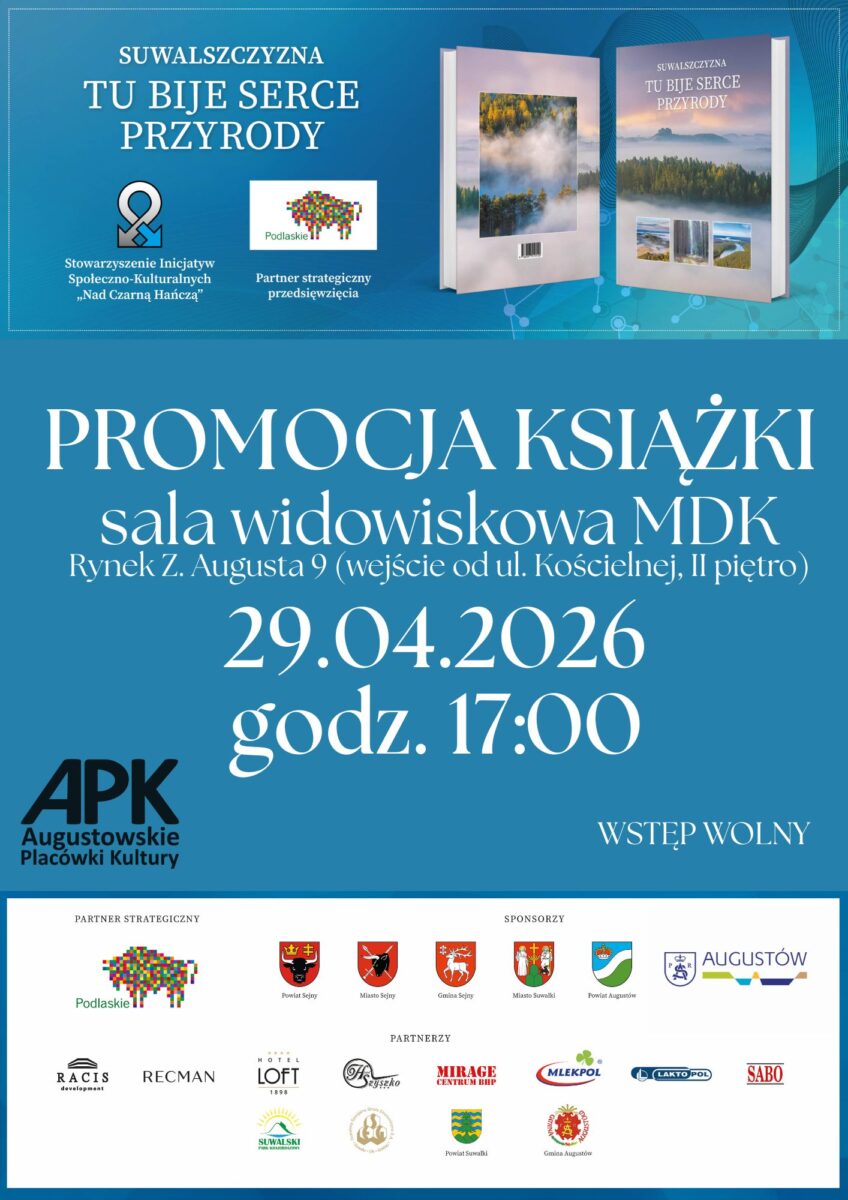 Stowarzyszenie Inicjatyw Społeczno-Kulturalnych „Nad Czarną Hańczą” oraz Augustowskie Placówki Kultury zapraszają na promocję albumu „Suwalszczyzna. Tu bije serce przyrody”, wydanego pod redakcją Stanisław Kuraka.