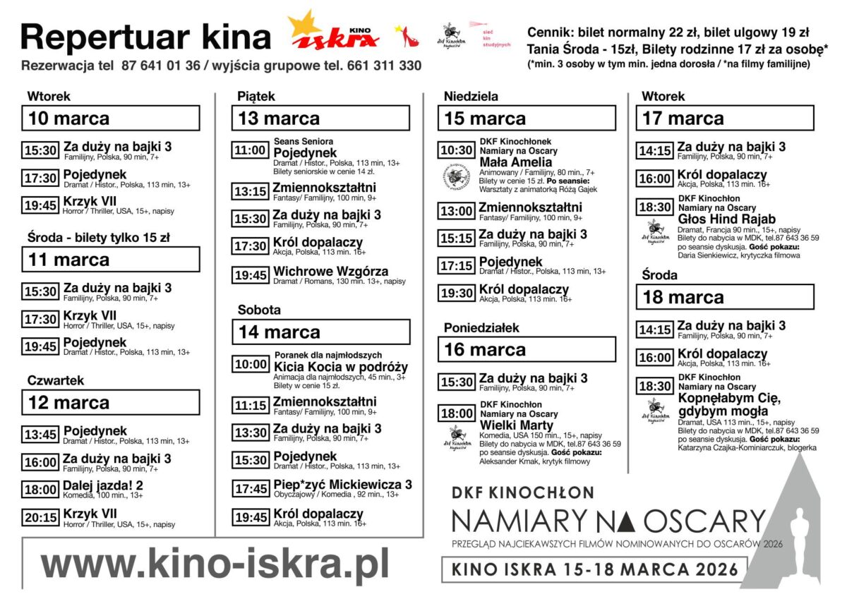 UWAGA: godziny czwartkowych pokazów uległy zmianie.