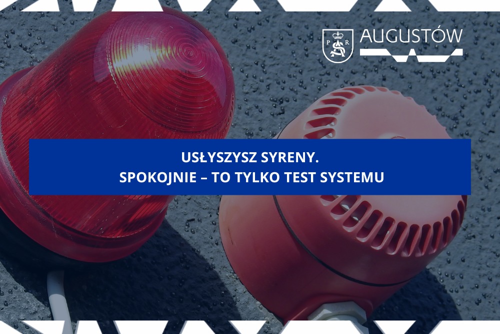 Wydział Spraw Obronnych, Cyberbezpieczeństwa i Logistyki Urzędu Miejskiego w Augustowie informuje, iż w dniu 25 marca 2026r. w godz. 9.00 – 10.30 na terenie miasta Augustów będą uruchamiane syreny alarmowe w celu przeprowadzenia testu sprawności urządzeń systemu wykrywania i alarmowania.