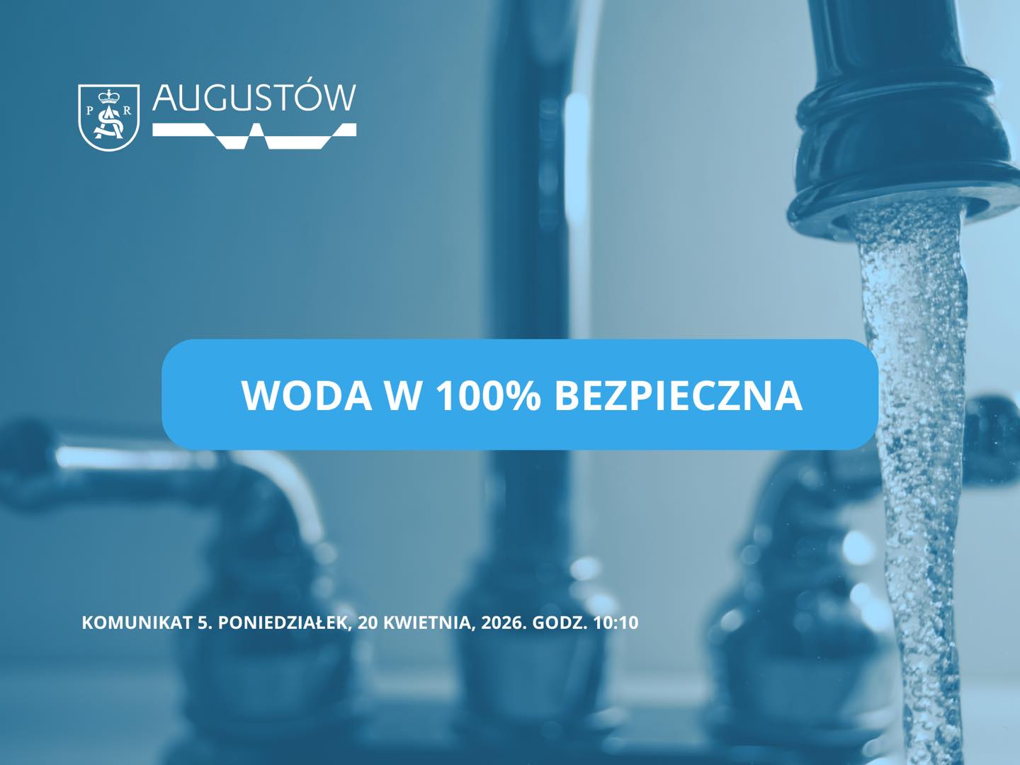 Państwowa Inspekcja Sanitarna poinformowała dziś, że woda z miejskiego wodociągu w Augustowie spełnia wszystkie normy Ministra Zdrowia i nadaje się do bezpośredniego spożycia oraz celów gospodarczych.